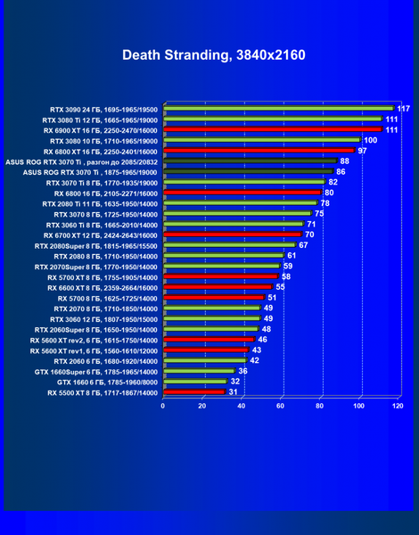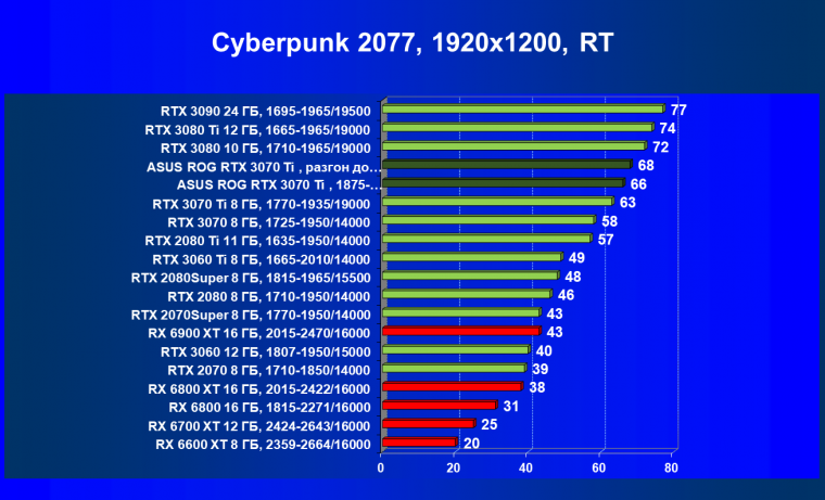 | 04 | Asus ROG RTX 3070 Ti, разгон до 2085/20832 | 200 | 16 | 129 000 |