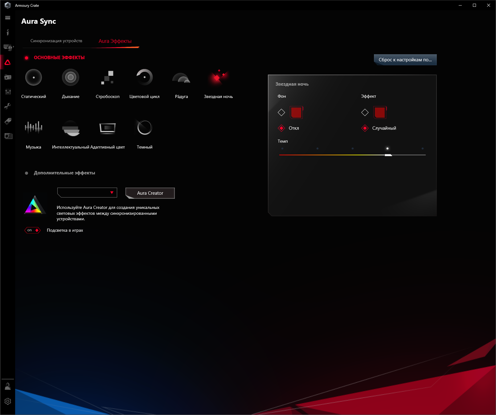 Выбор режимов не очень широк, однако имеется программа Aura Creator, которая также распространяется бесплатно, и с ее помощью можно создать собственные сценарии подсветки.