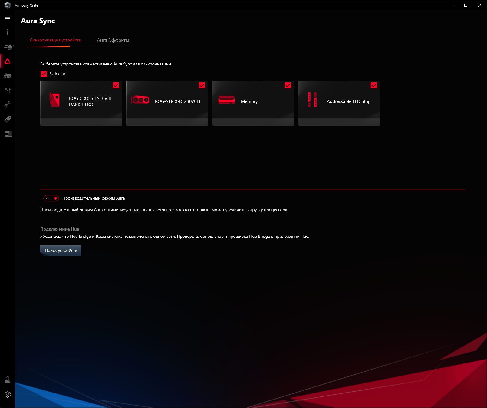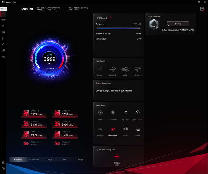 Управление подсветкой традиционно выполнено с помощью фирменной программы Asus — Armoury Crate.