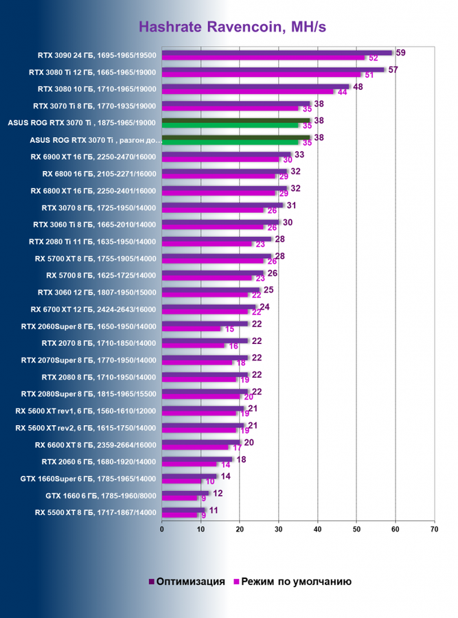 | 05 | Asus ROG RTX 3070 Ti, 1875—1965/19000 | 190 | 15 | 129 000 |