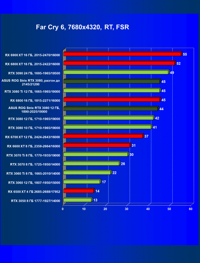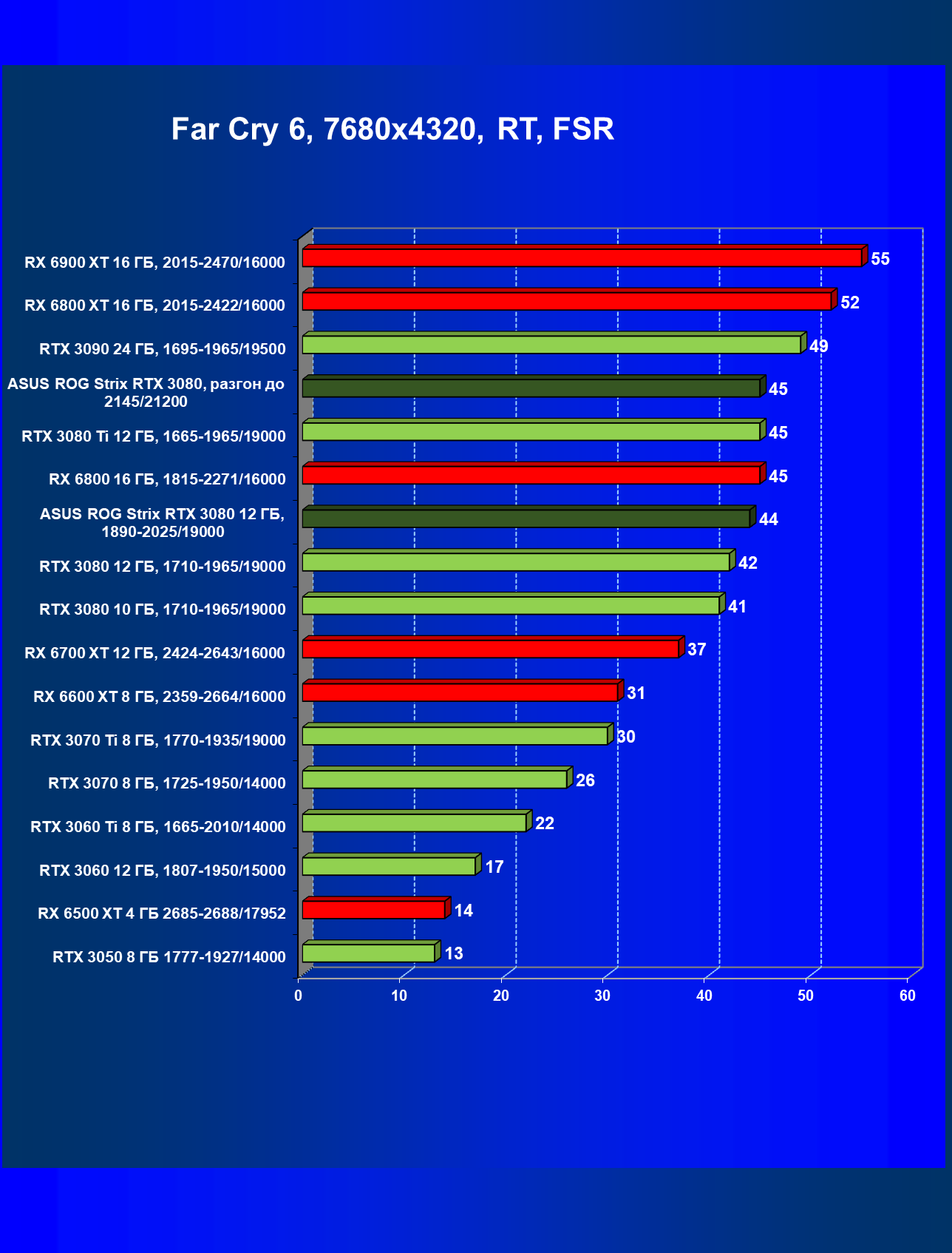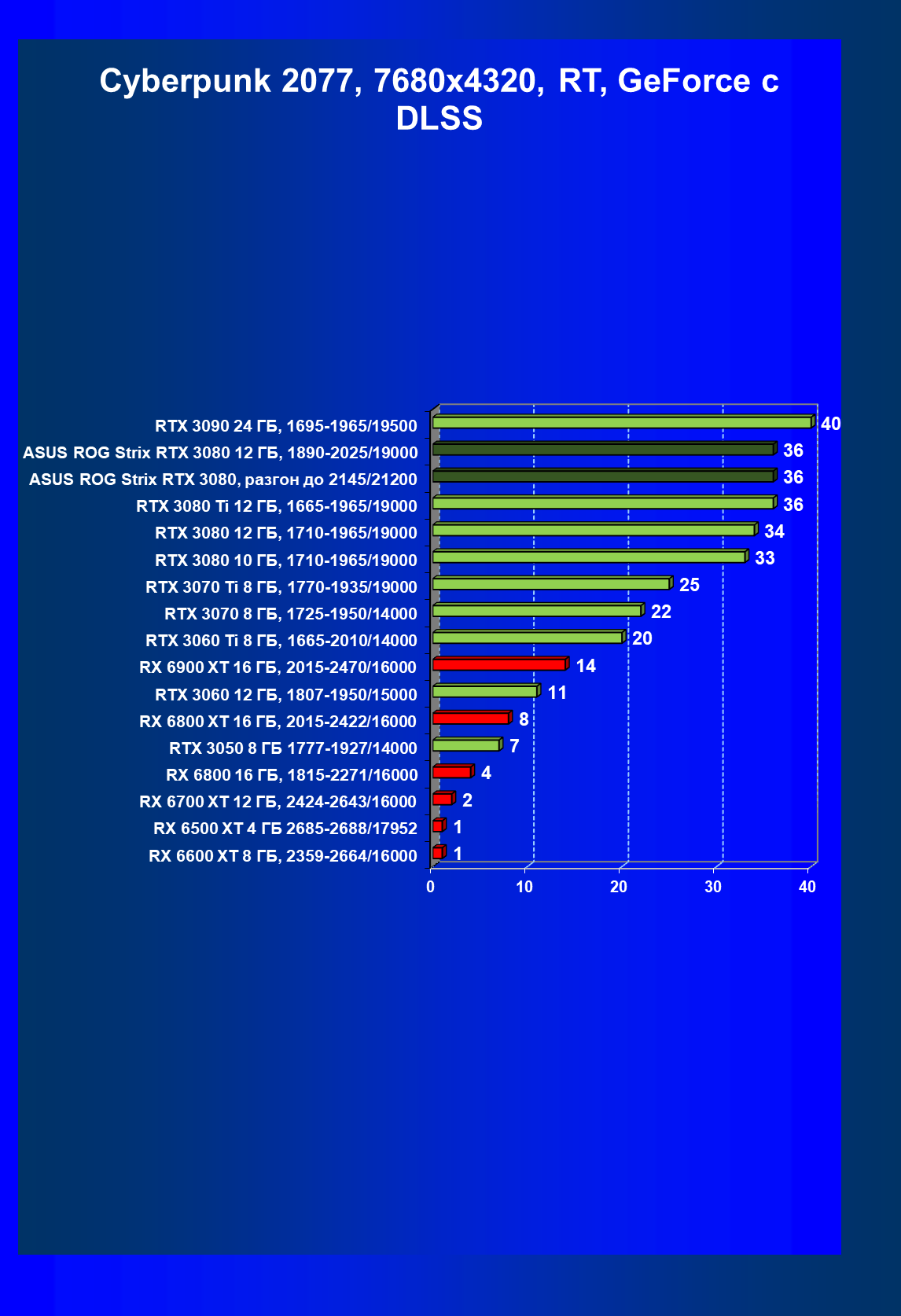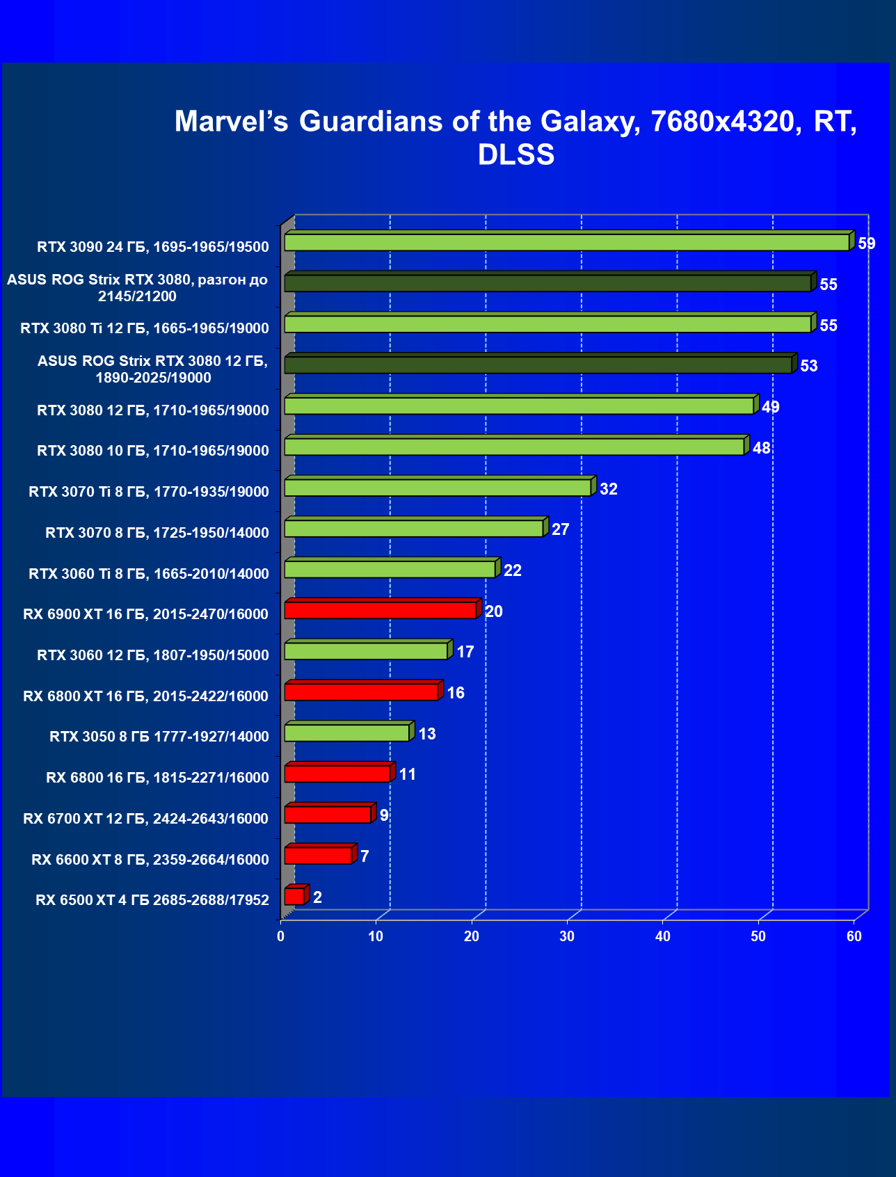 Учитывая, что RTX 3080 12 ГБ по производительности находится не так уж далеко от RTX 3090, а последний мы уже исследовали в работе в разрешении 8К, то логично было протестировать в этом огромном разрешении и новинку — разумеется, с применением DLSS.