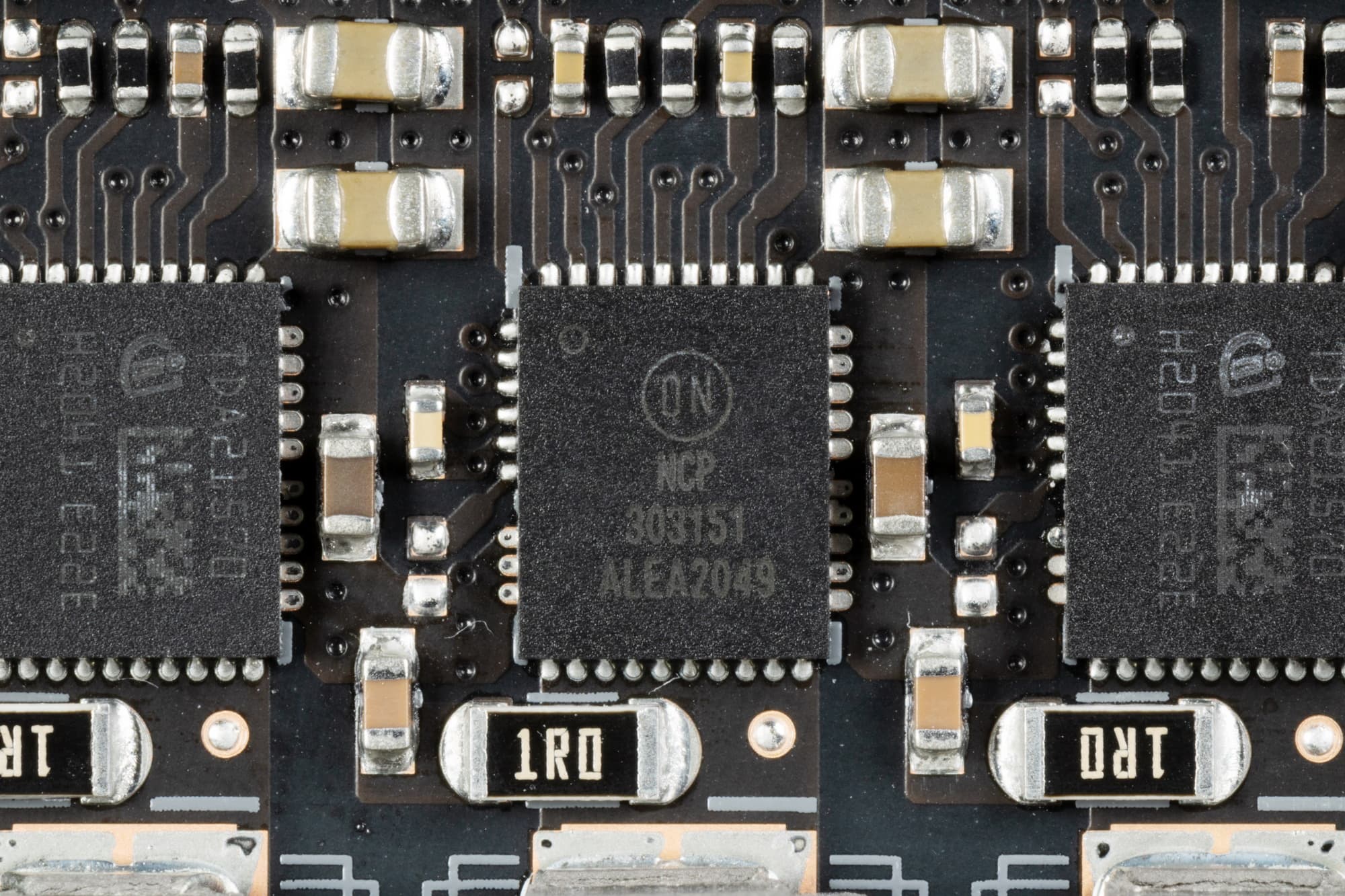 А в схеме преобразования питания микросхем памяти применены сборки NCP303151 (On Semiconductor), рассчитанные на максимальный ток 50 А.