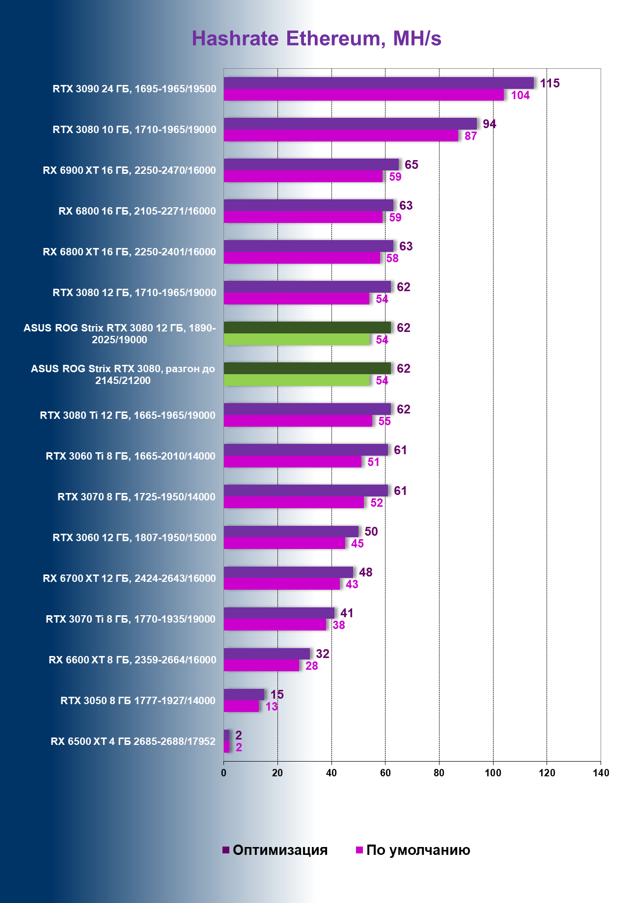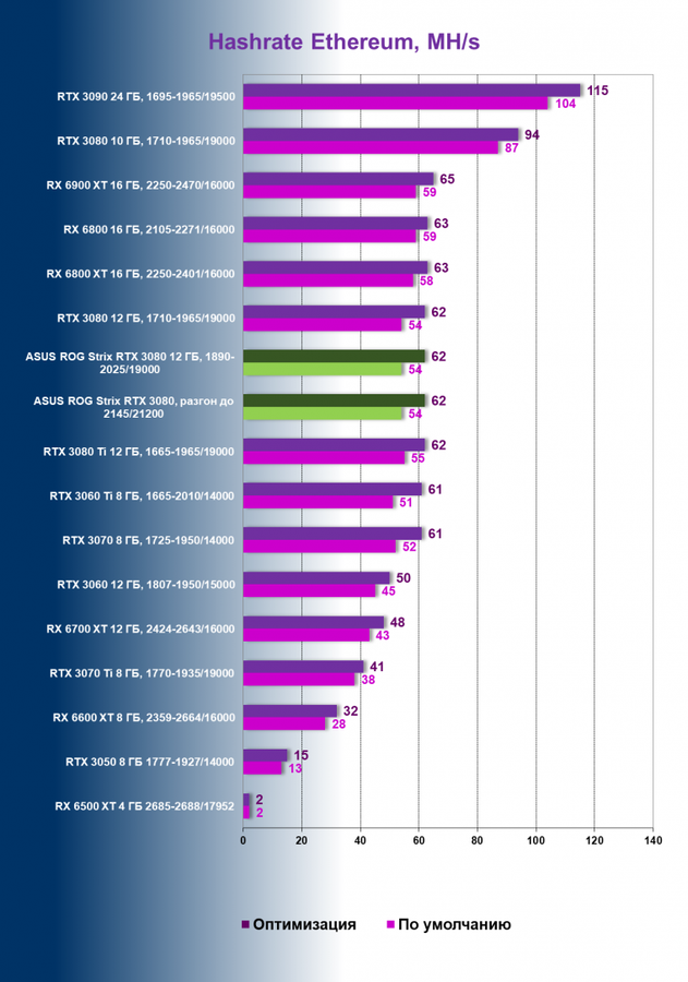 | 05 | Asus ROG Strix RTX 3080 12 ГБ, 1890—2025/19000 | 380 |