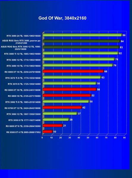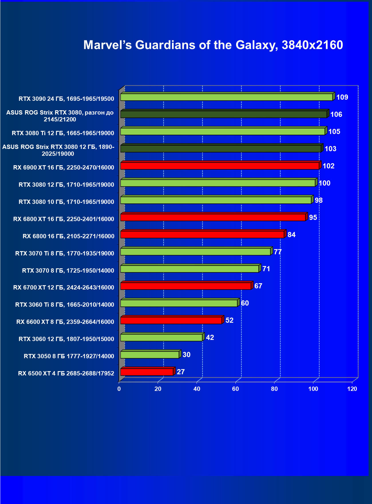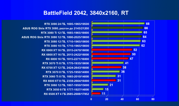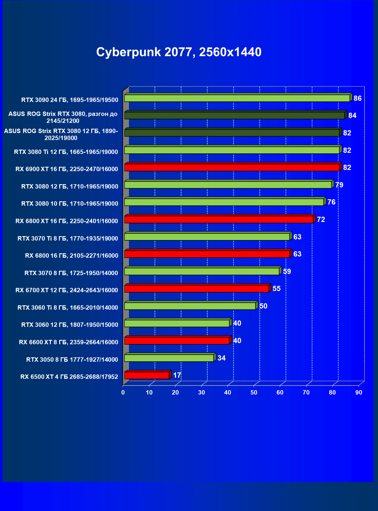 | 04 | Asus ROG Strix RTX 3080 12 ГБ, 1890—2025/19000 | 810 |