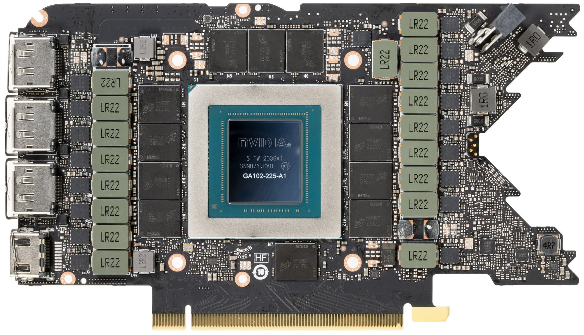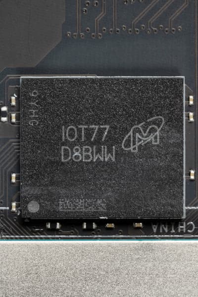 Карта имеет 12 ГБ памяти GDDR6X SDRAM, размещенной в 12 микросхемах по 8 Гбит на лицевой стороне PCB. Микросхемы памяти Micron (GDDR6X, MT61K256M32JE-19G / D8BWW) рассчитаны на номинальную частоту работы в 4750 (19000) МГц.