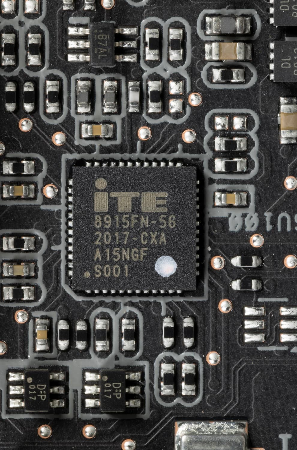 Как и у всей серии видеокарт ROG, у этой платы в хвостовой части имеются два коннектора для подключения корпусных вентиляторов, которые будут работать в соответствии с нагревом видеокарты, и за это отвечает контроллер IT8915FN (ITE).