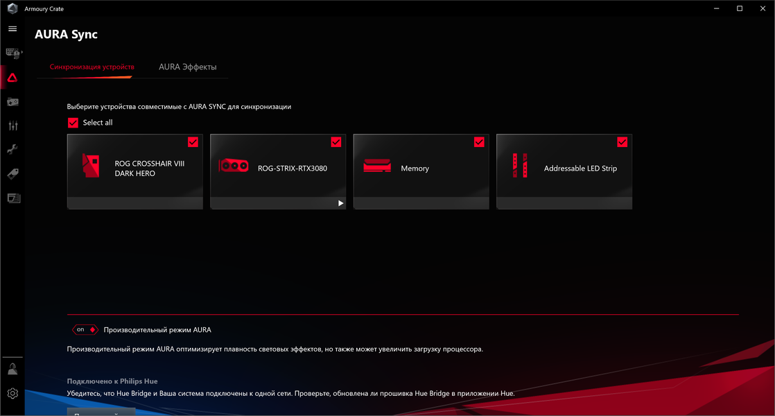 Управление подсветкой традиционно выполнено с помощью фирменной программы Asus — Armoury Crate.