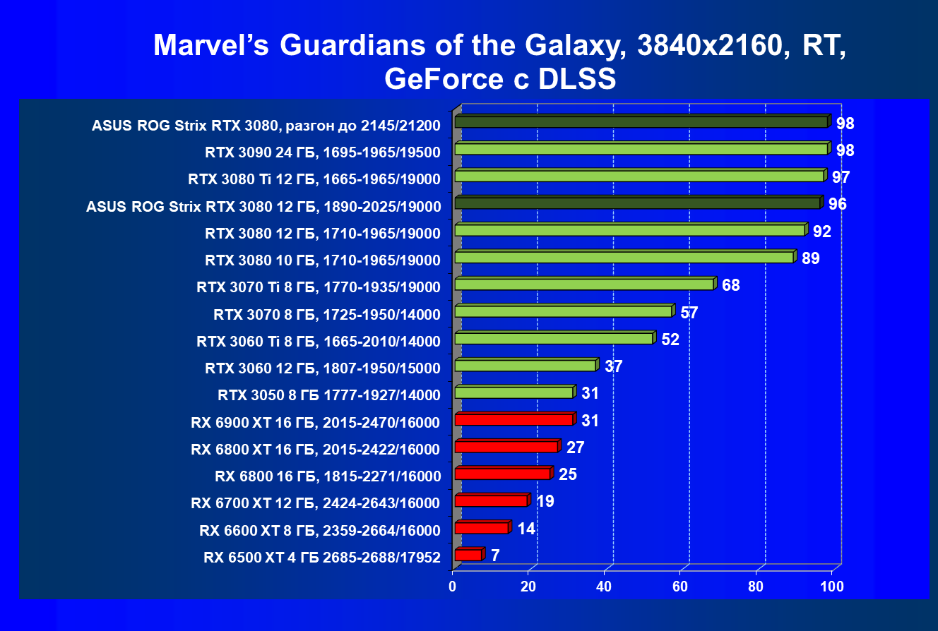 | 02 | Asus ROG Strix RTX 3080, разгон до 2145/21200 | 830 |