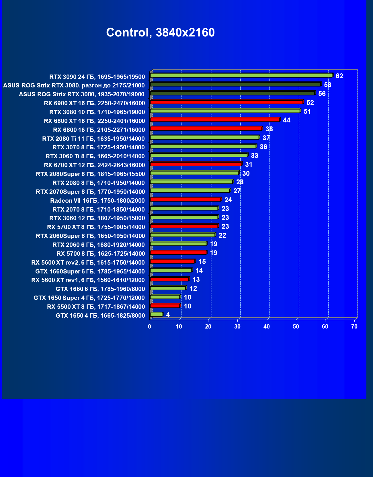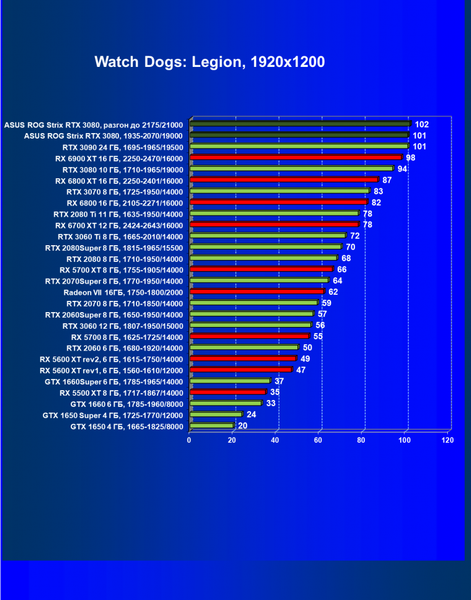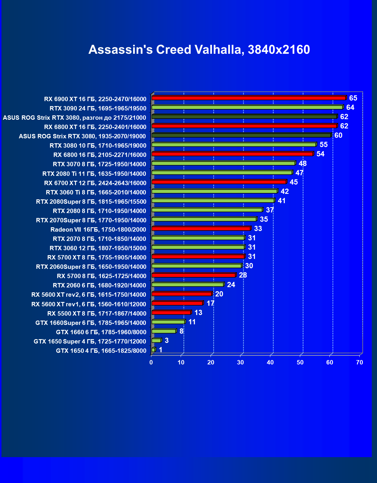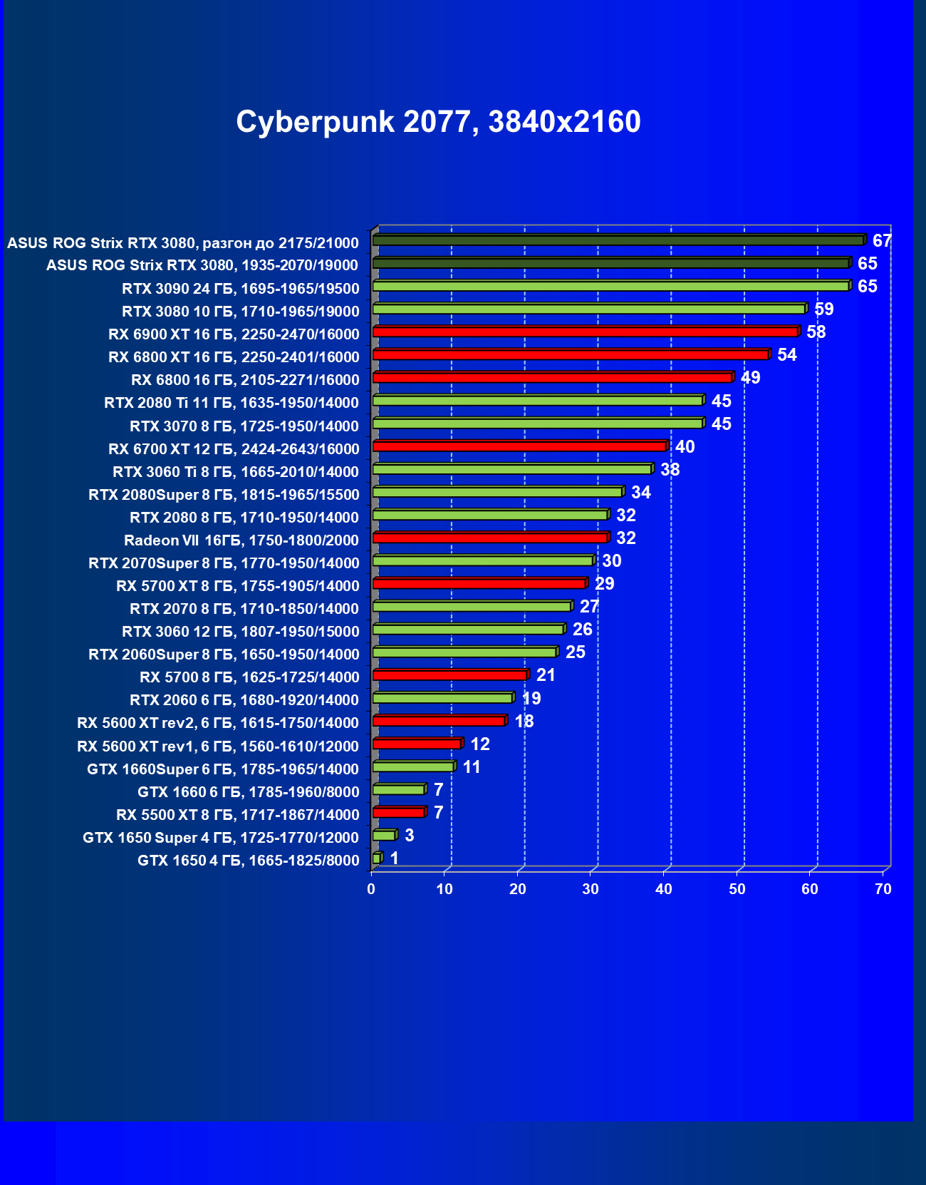 | 11 | Asus ROG Strix RTX 3080, 1935—2070/19000 | 67 | 1731 | 259 000 |