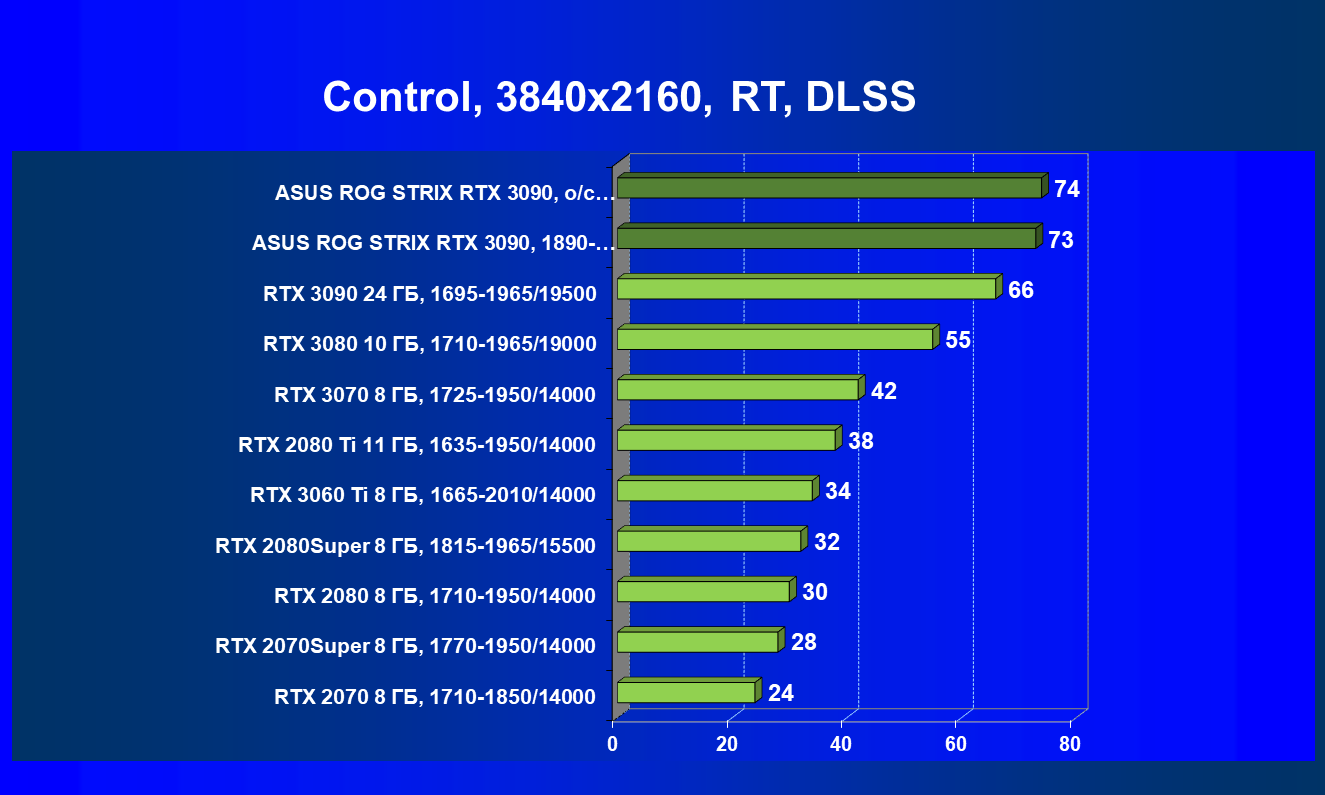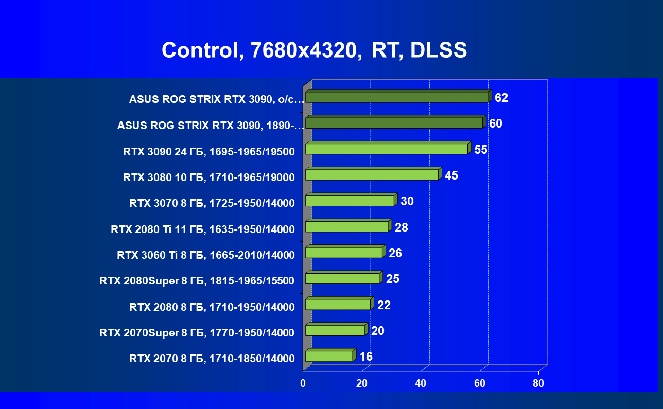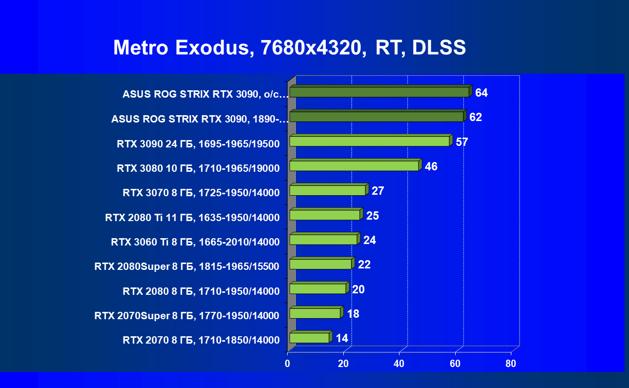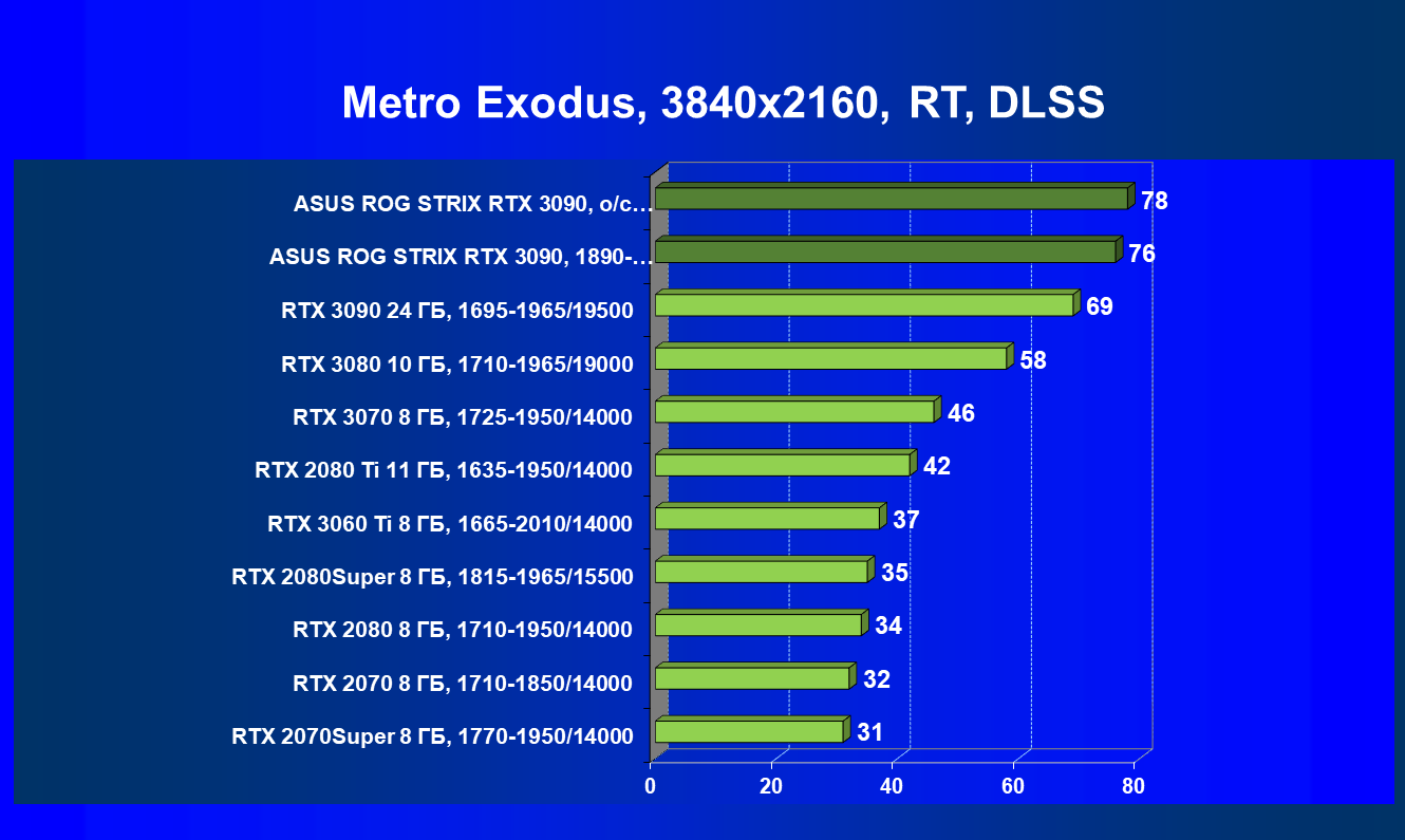 | 02 | Asus ROG Strix RTX 3090, 1890—2055/19500 | 1490 | 60 | 250 000 |