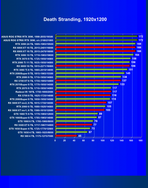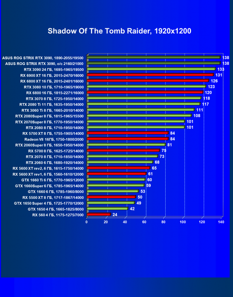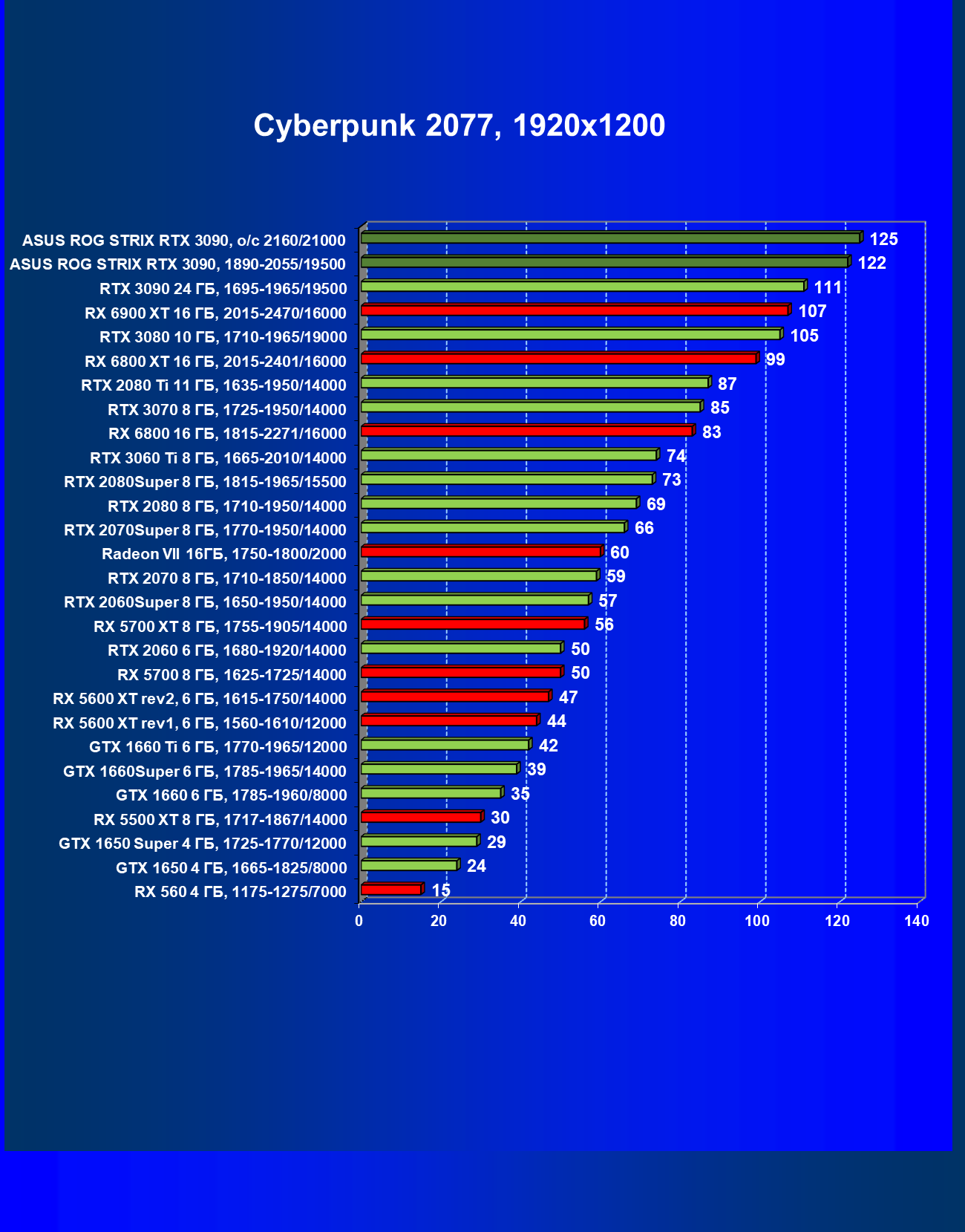 | 12 | Asus ROG Strix RTX 3090, 1890—2055/19500 | 13 | 318 | 250 000 |
