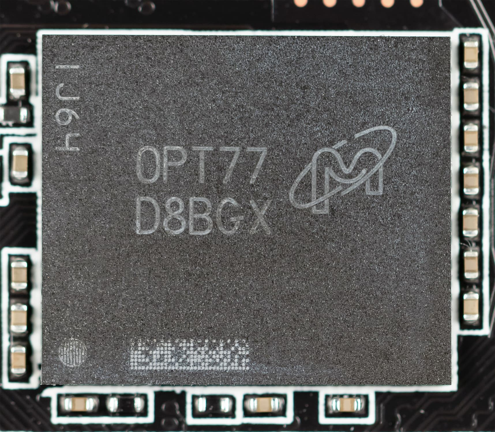 На той же стороне имеется ШИМ-контроллер uPI Semiconductor uP9512Q, который управляет 4-фазной схемой питания микросхем памяти.