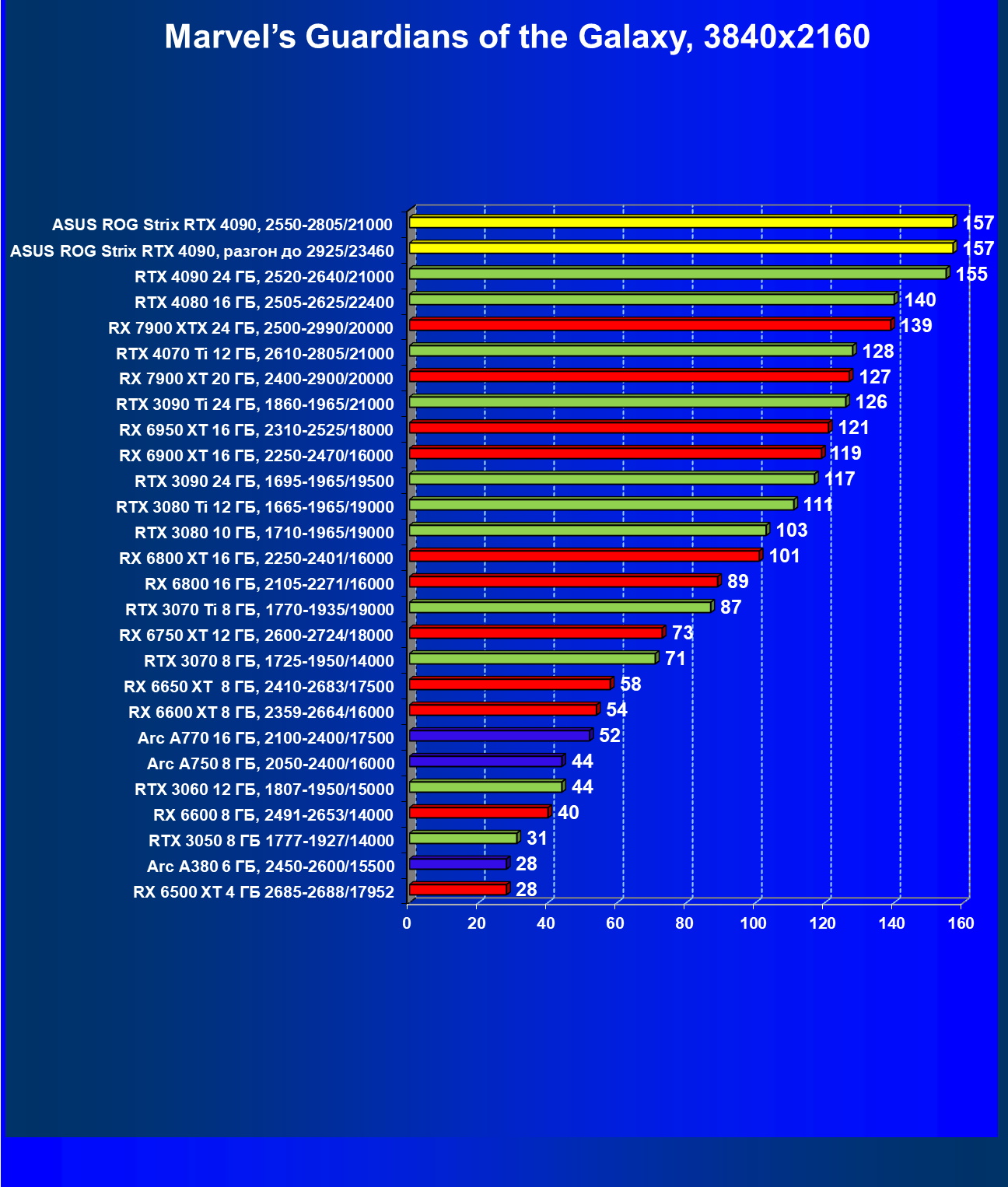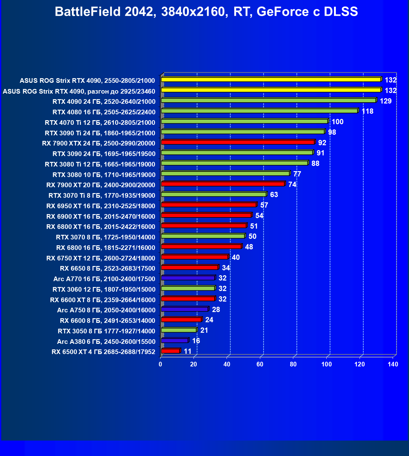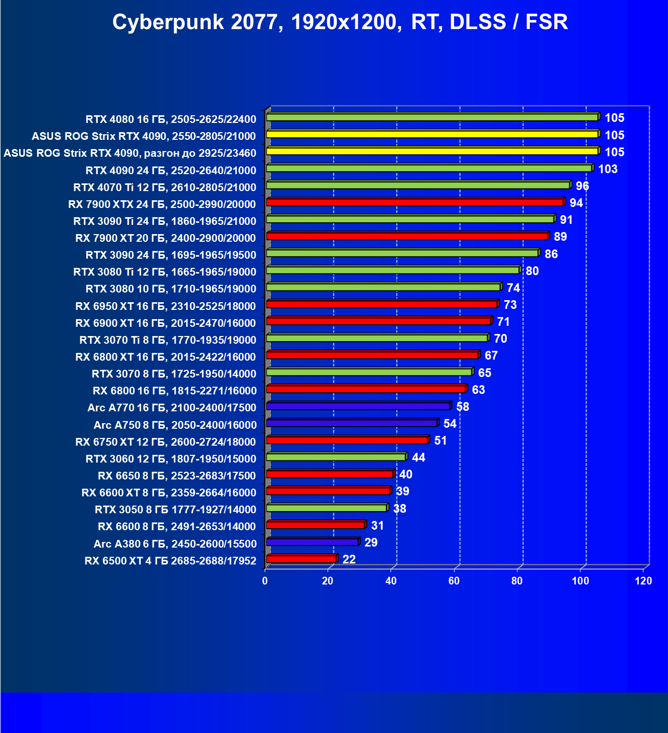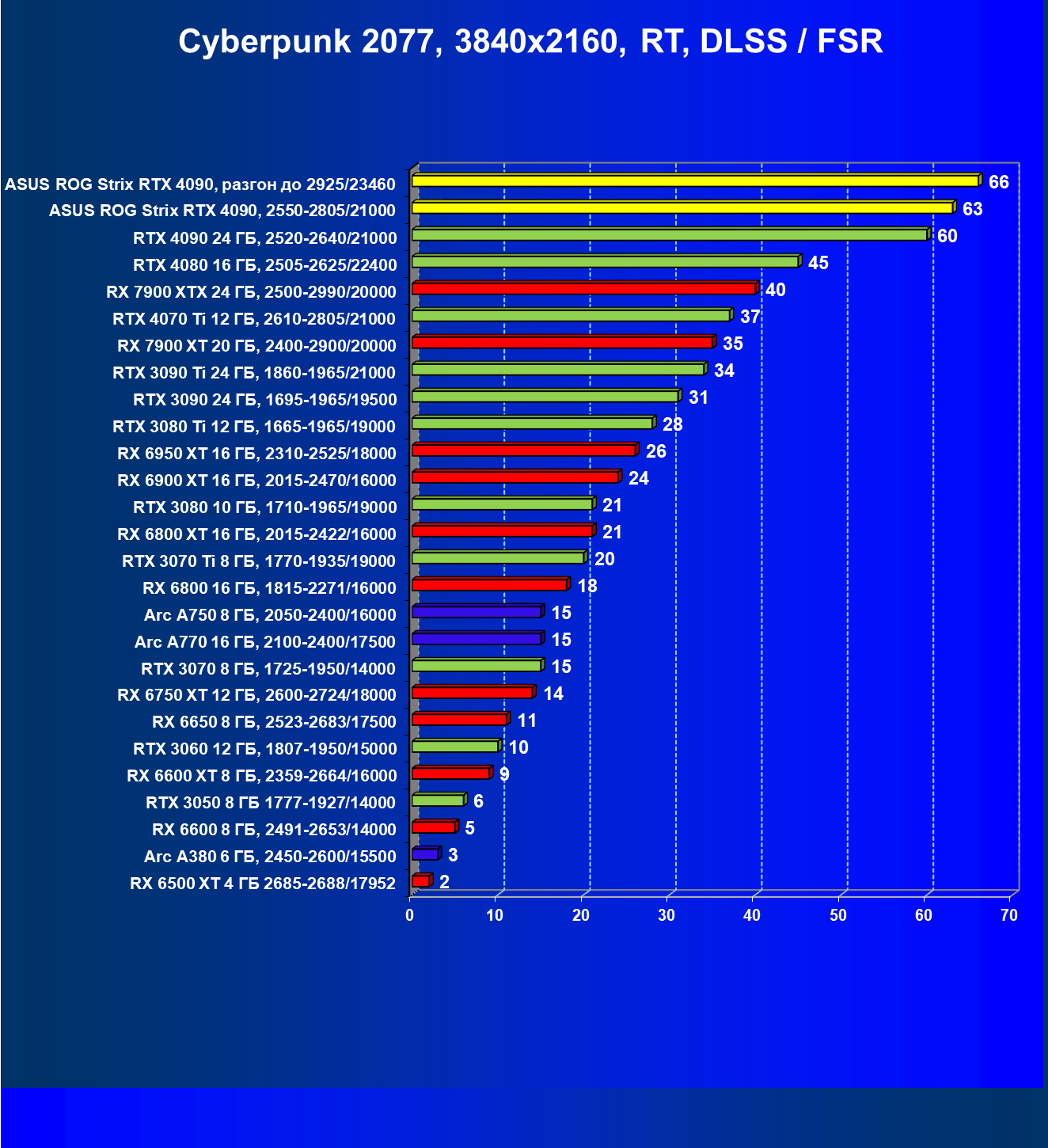 | 25 | Asus ROG Strix RTX 4090, разгон до 2925/23460 | 94 | 1878 | 200 000 |