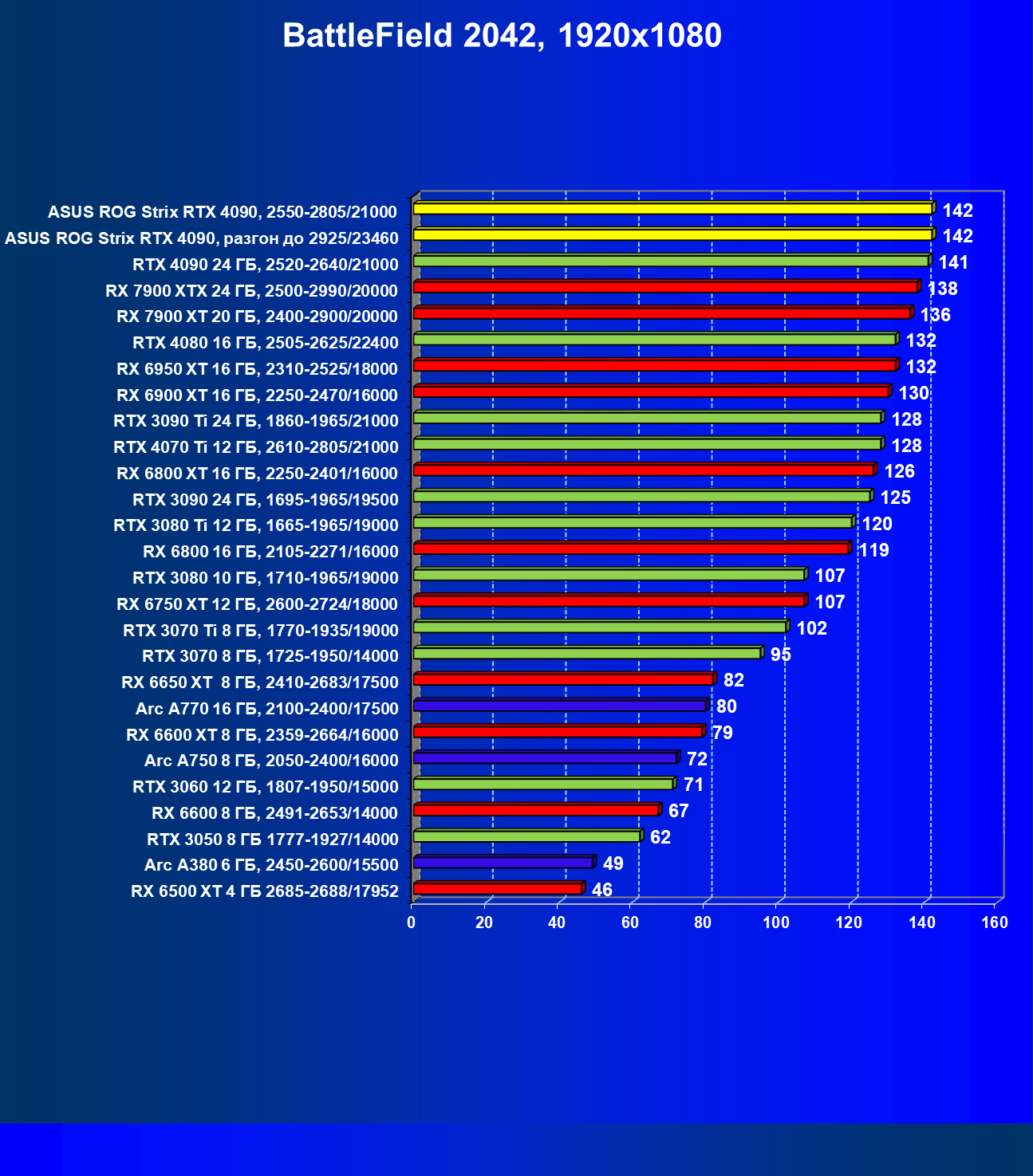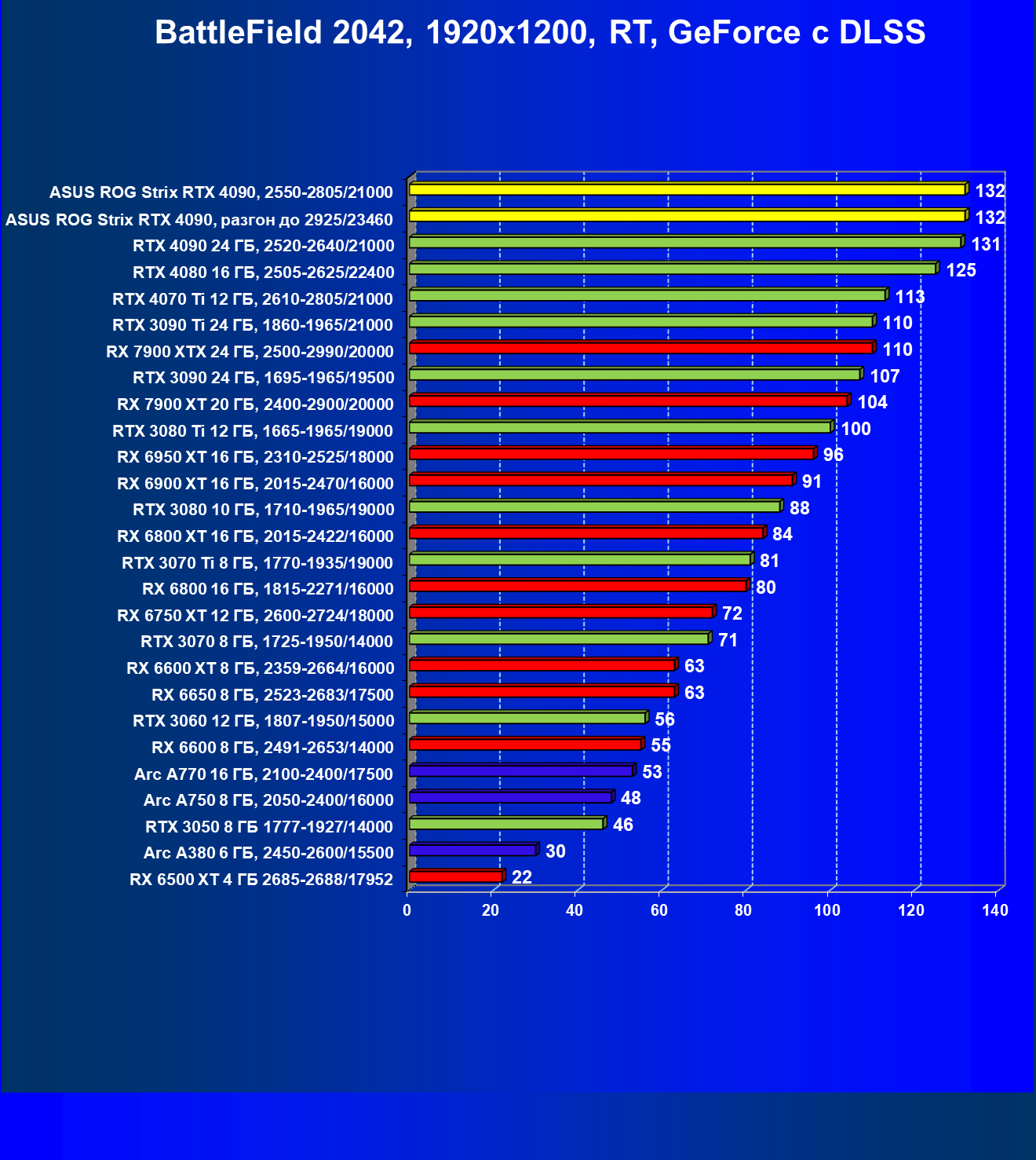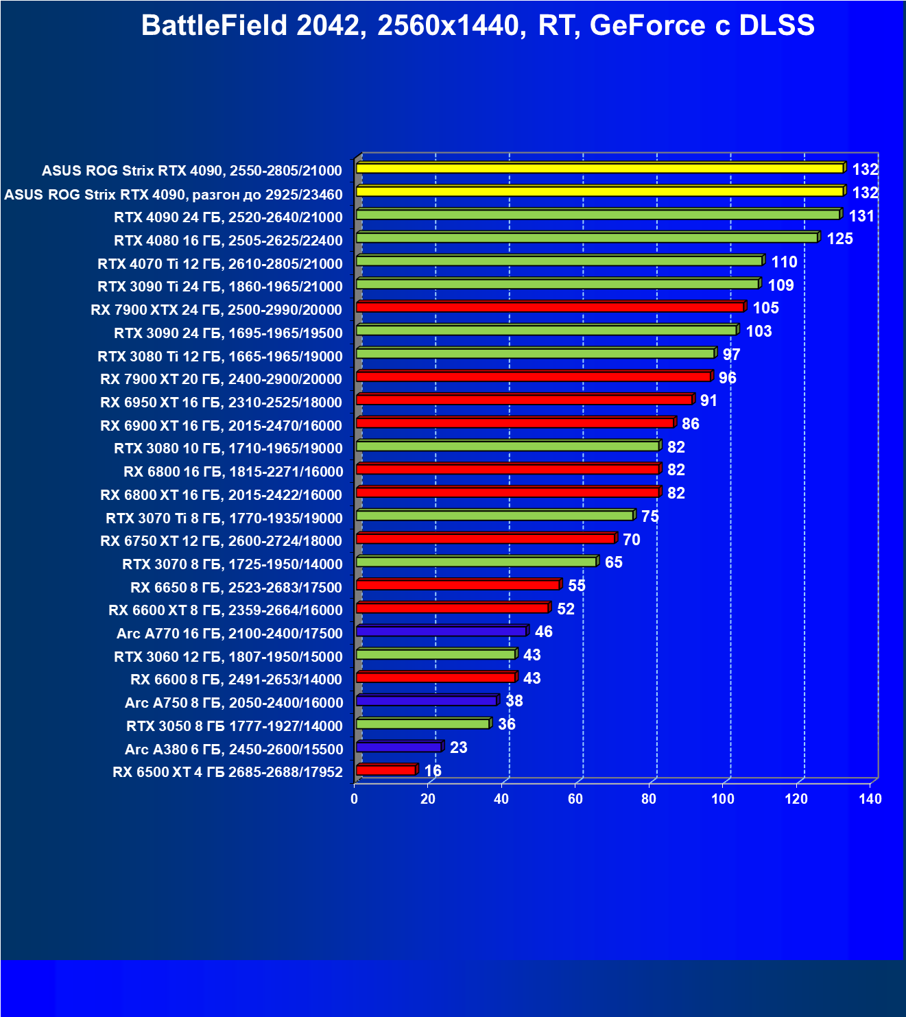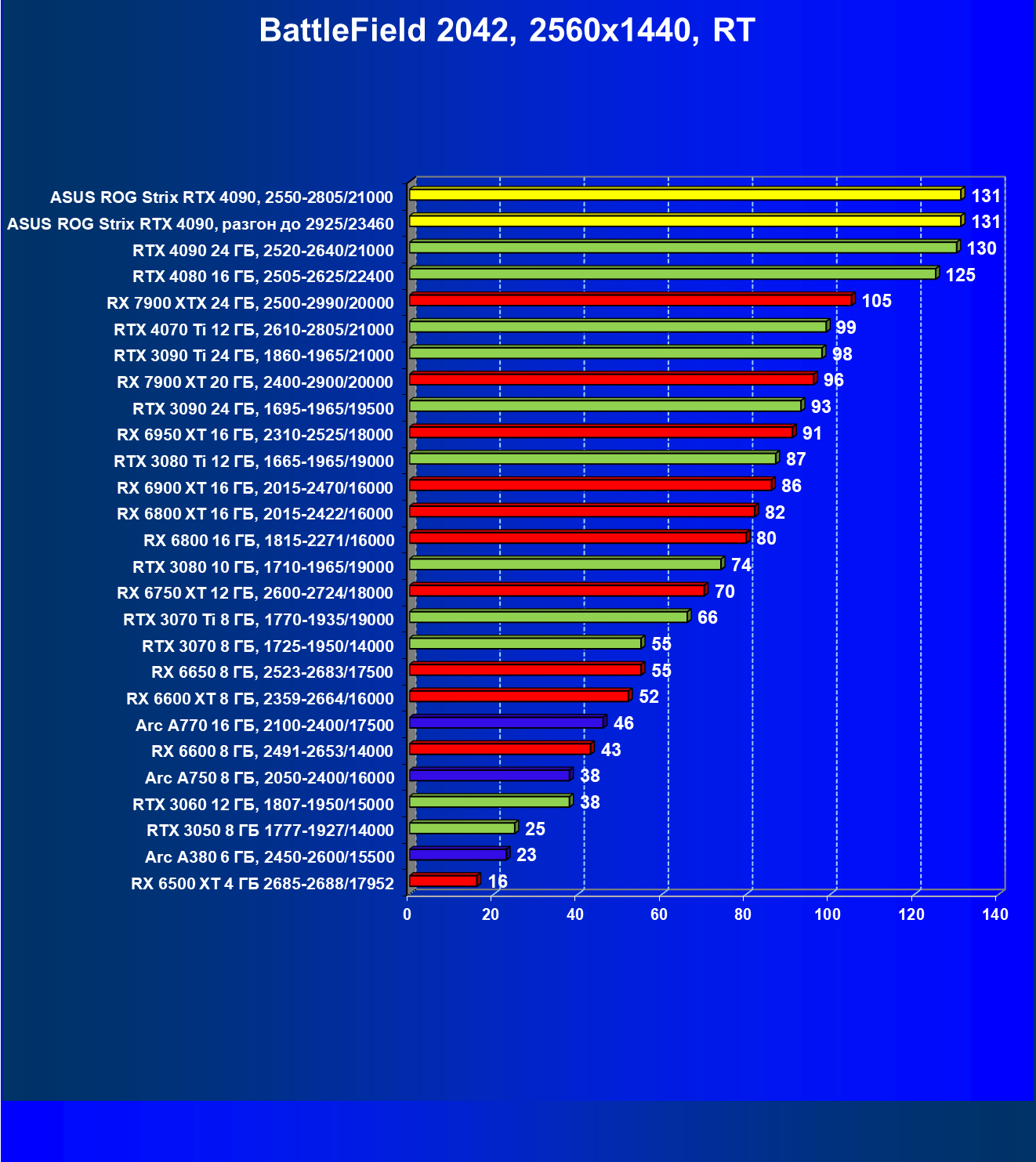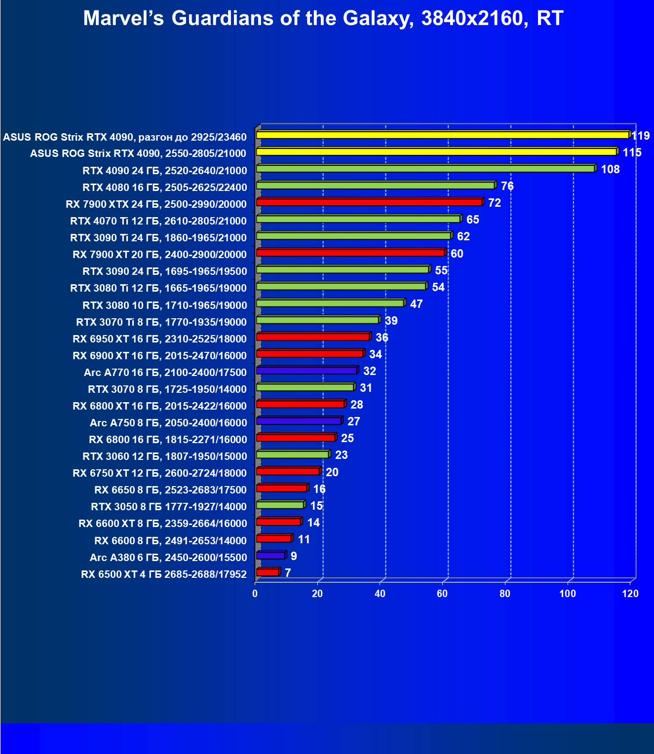 | 25 | Asus ROG Strix RTX 4090, разгон до 2925/23460 | 94 | 1878 | 200 000 |
