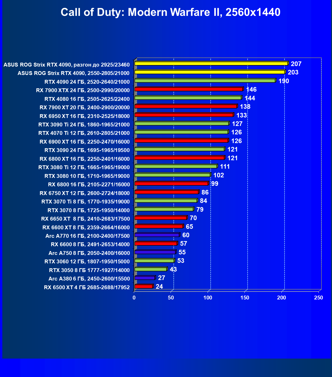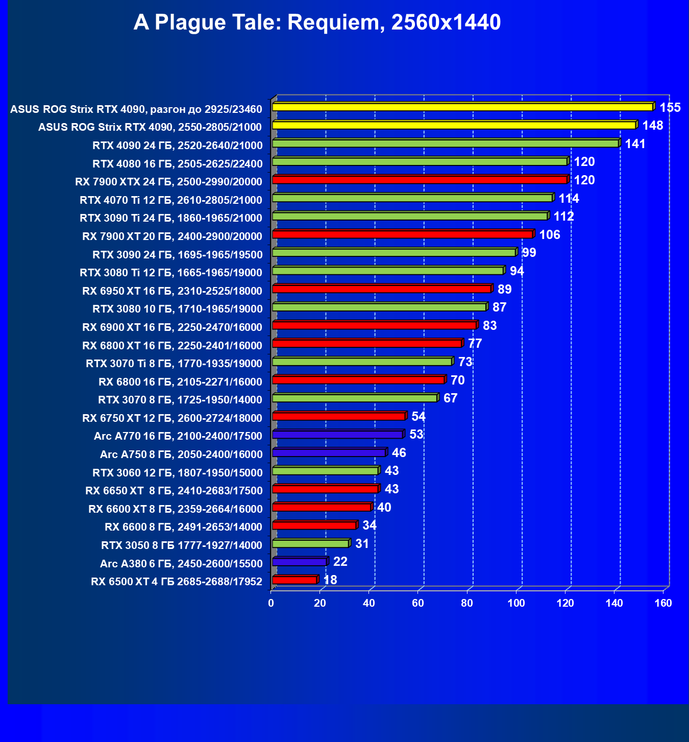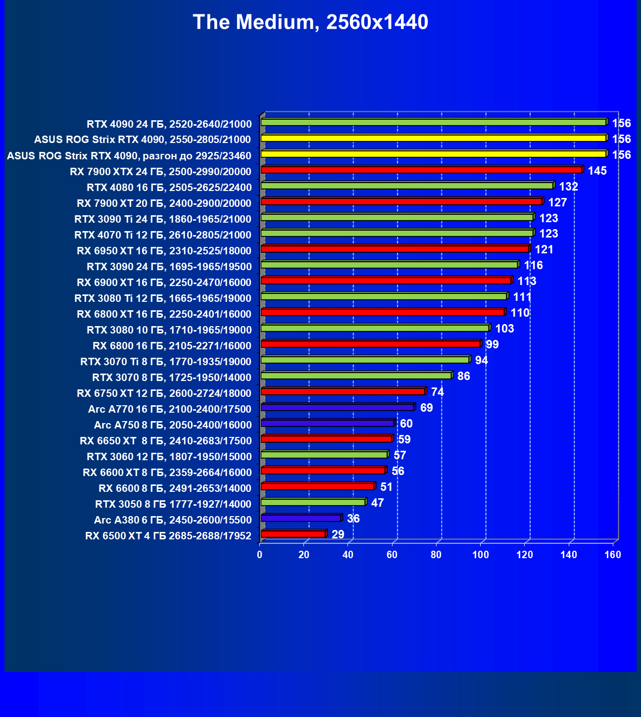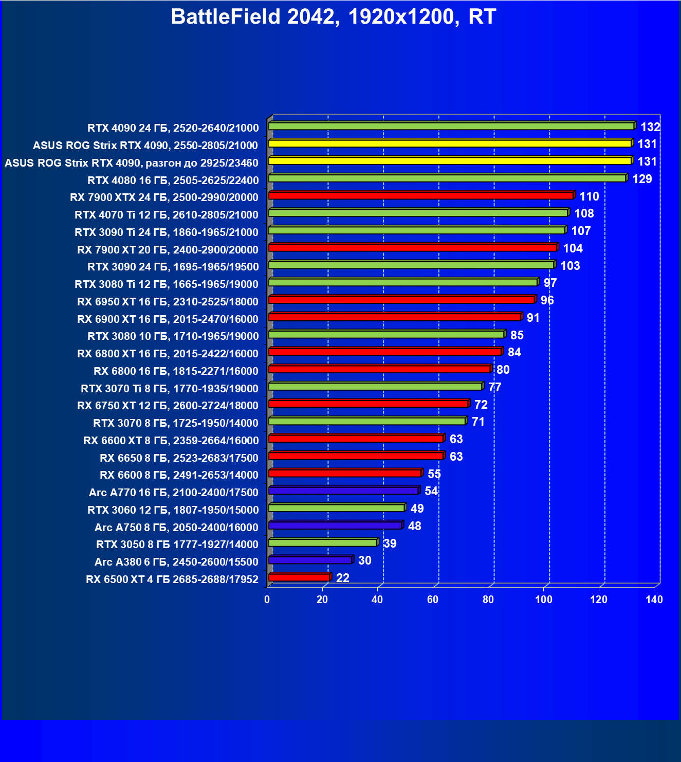 | 25 | Asus ROG Strix RTX 4090, разгон до 2925/23460 | 94 | 1878 | 200 000 |