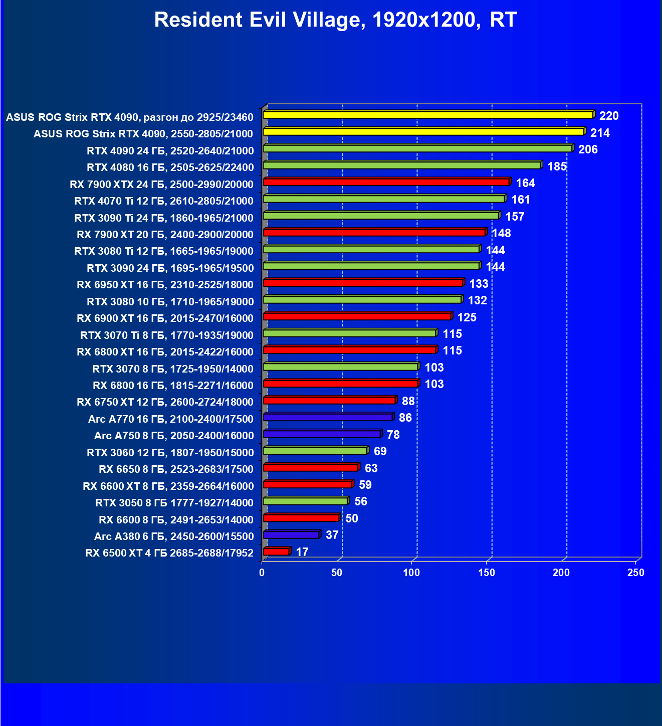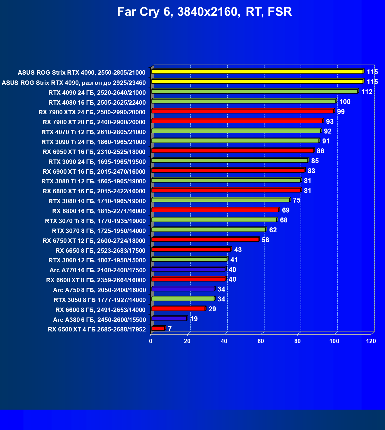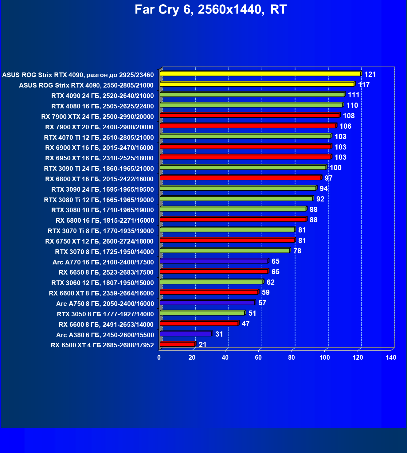 | 17 | RX 7900 XTX 24 ГБ, 2500—2990/20000 | 121 | 1280 | 106 000 |