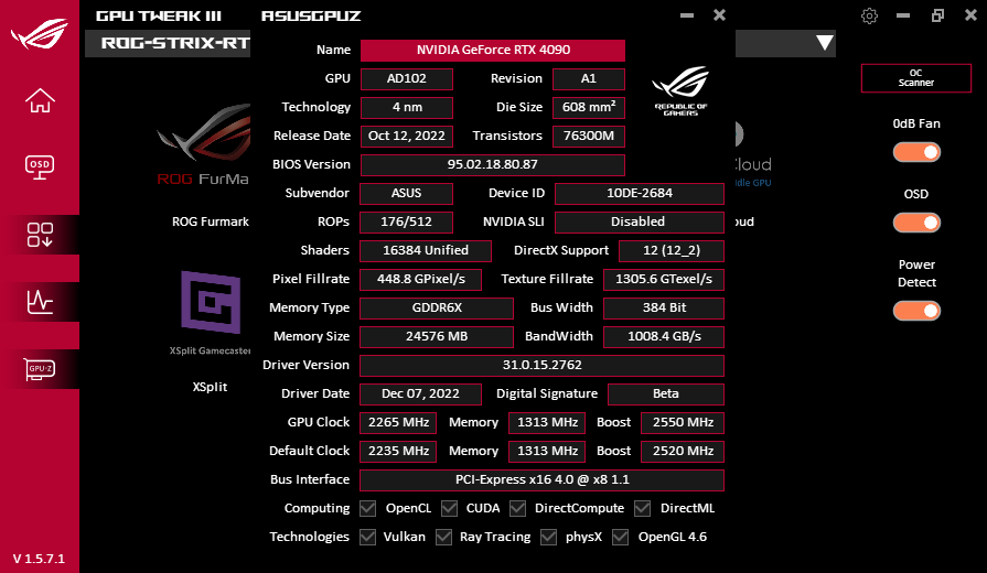 Объект исследования: серийно выпускаемый ускоритель трехмерной графики (видеокарта) Asus ROG Strix GeForce RTX 4090 24 ГБ 384-битной GDDR6X