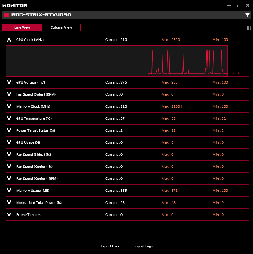 Asus ROG Strix GeForce RTX 4090 (24 ГБ) — очень крупный, самый длинный представитель флагманского ускорителя игрового класса GeForce RTX 4090. Видеокарта способна потреблять при ручном разгоне выше 550 Вт, поэтому надо иметь очень хороший мощный блок питания. Система охлаждения просто великолепна: тихая, лишь в режиме BIOS PMode кулер немного слышно при максимальной нагрузке. Видеокарта снабжается раздвижной подставкой (правда, ее длина может подойти не ко всем корпусам ПК), что гарантирует отсутствие провисания тяжелой карты, но при этом нет жесткого крепления подставки к самой карте. Габариты этой модели составляют 36 см в длину и 15 см в высоту, а по толщине видеокарта занимает 4 слота в корпусе.