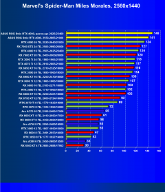 Я думаю, что диаграмма выше всё прекрасно демонстрирует: даже в разрешении 4K во многих играх общая производительность ограничивается уже не видеокартой, а другими компонентами системы, чаще всего упирается в возможности центрального процессора (даже Core i9-12900K не способен угнаться за GeForce RTX 4090, причем в 4K!). Что касается карты Asus, то, несмотря на то, что у нас вариант не ОС, она все равно чуть быстрее референс-аналога.