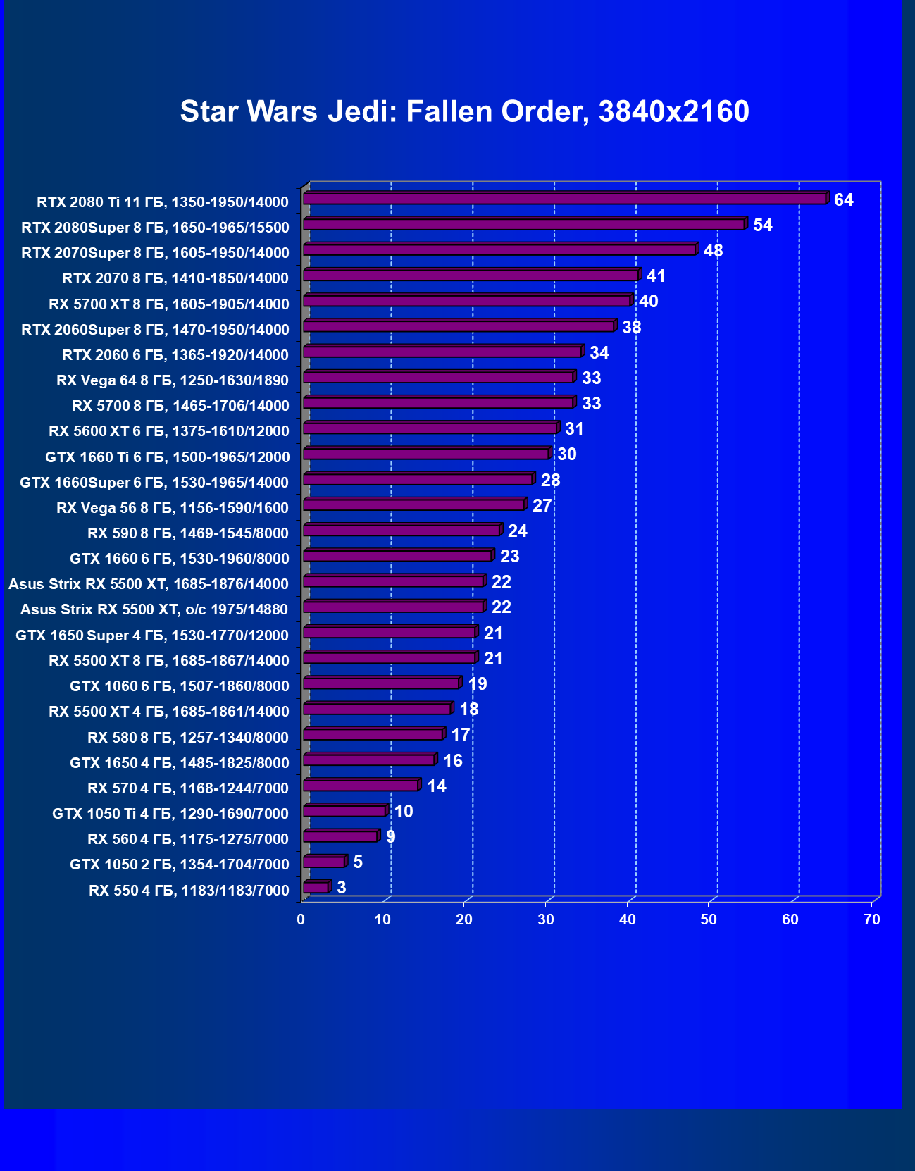 | 21 | Asus Strix RX 5500 XT, 1685—1876/14000 | 283 | 580 | 20 500 |