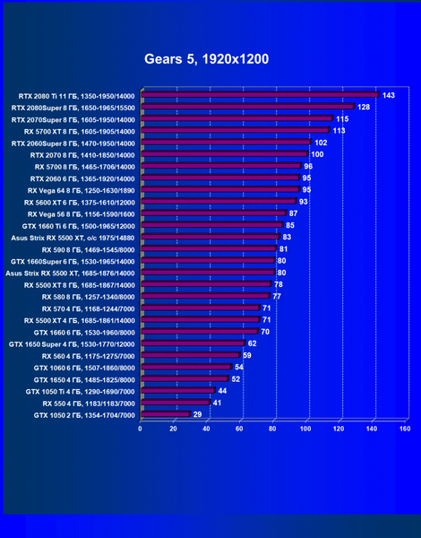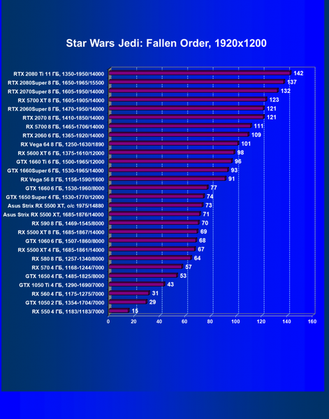 | 17 | Asus Strix RX 5500 XT, 1685—1876/14000 | 580 | 283 | 20 500 |