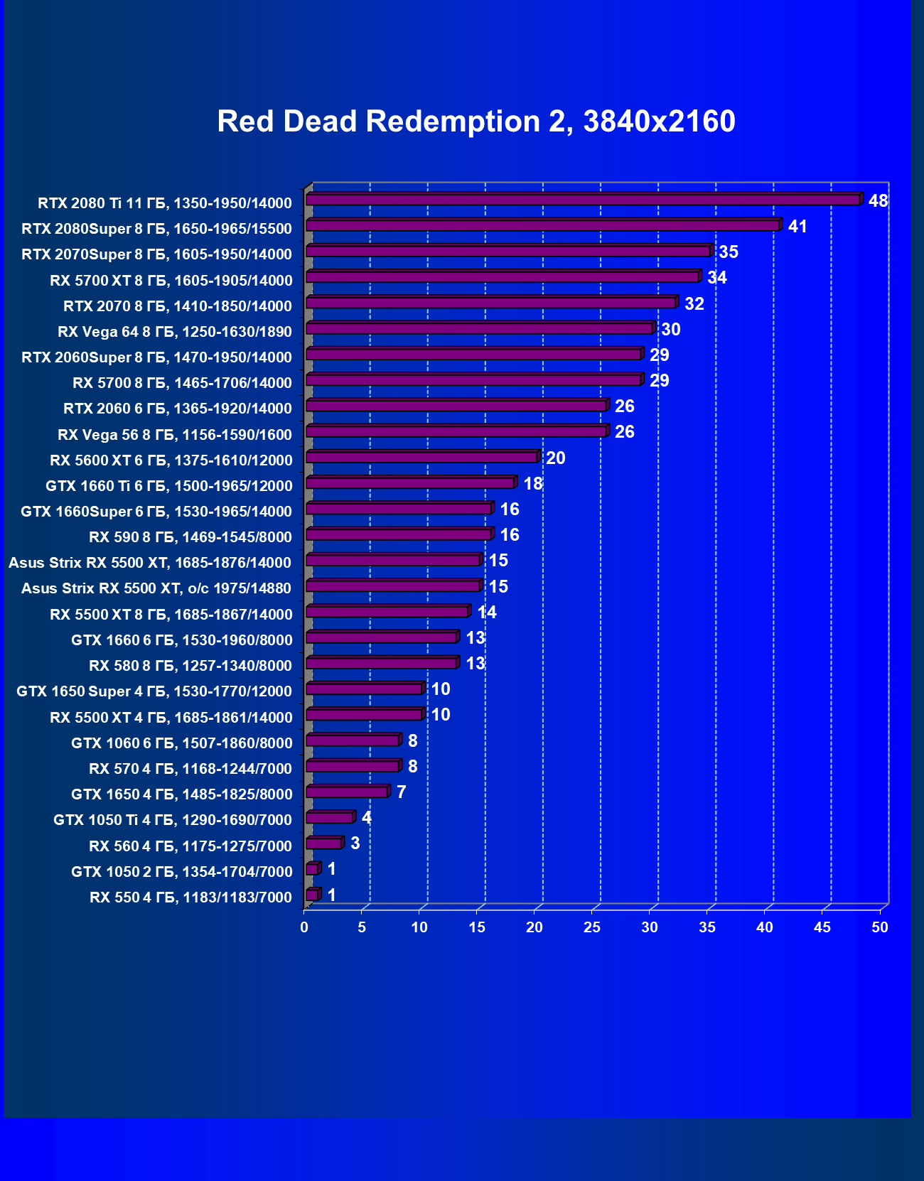 | 13 | GTX 1660 Super 6 ГБ, 1530—1965/14000 | 680 | 382 | 17 800 |