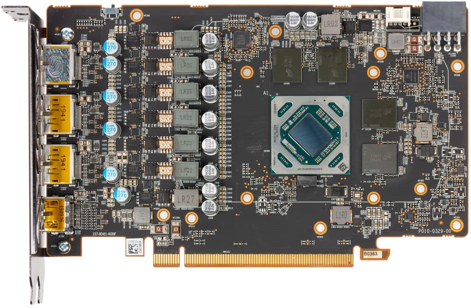 На снимке выше хорошо виден дополнительный разъем для подключения корпусного вентилятора, чтобы заставить его работать в соответствии с нагревом GPU карты (технология Fan Connect II). Всем этим также управляет вышеуказанный контроллер ITE.