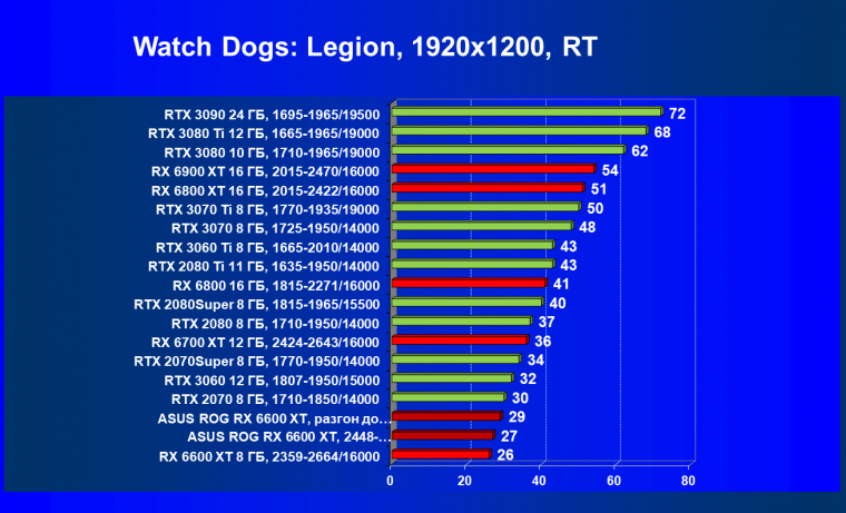 | 19 | RX 6600 XT 8 ГБ, 2359—2664/16000 | 70 | 12 | 59 000 |