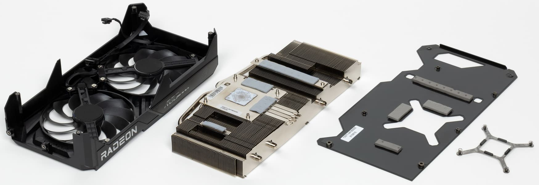 Поверх радиатора установлен кожух с двумя вентиляторами ∅95 мм типа Axial-tech, у которых концы лопастей соединены кольцом для более четкого направления потоков воздуха на радиатор.