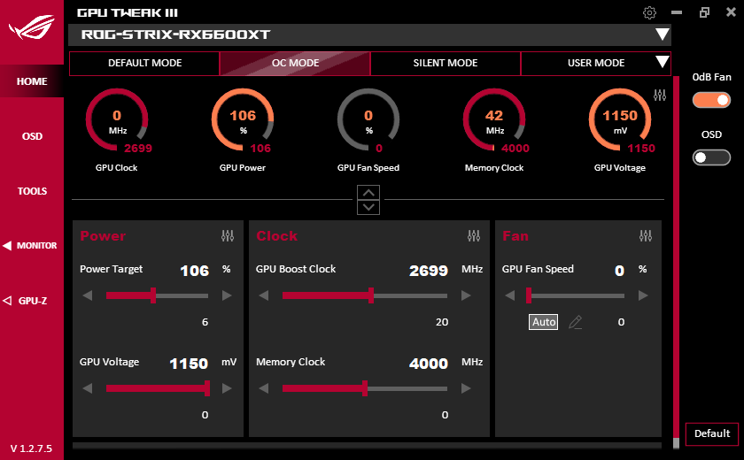 Управление работой карты обеспечивается с помощью хорошо известной фирменной утилиты Asus GPU Tweak III.