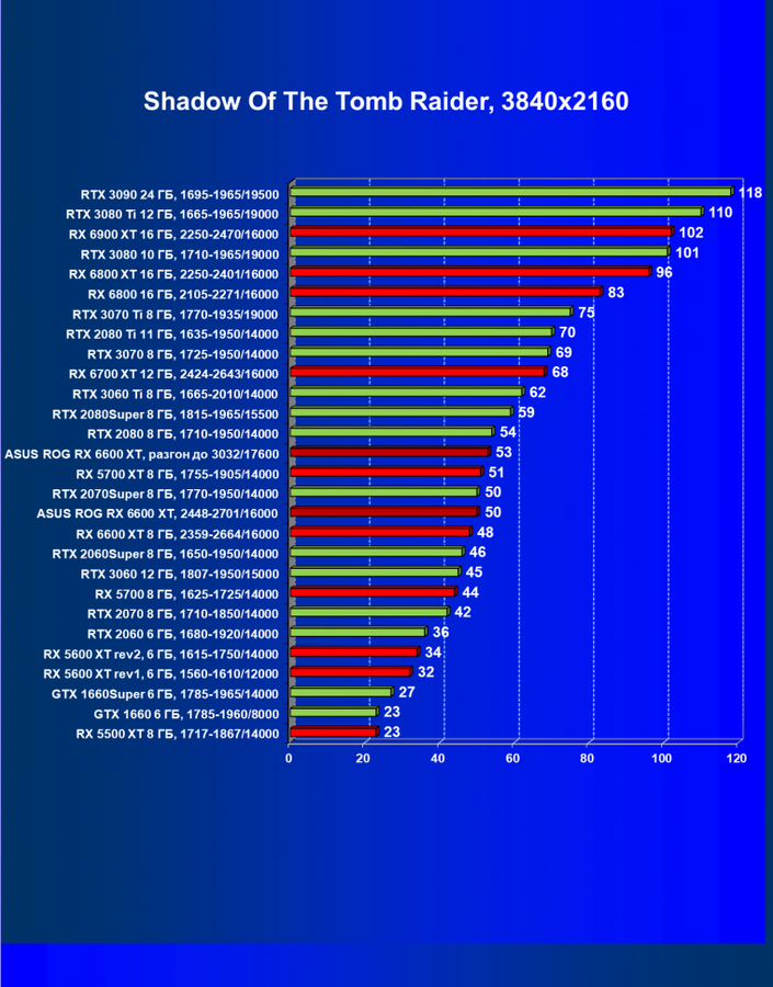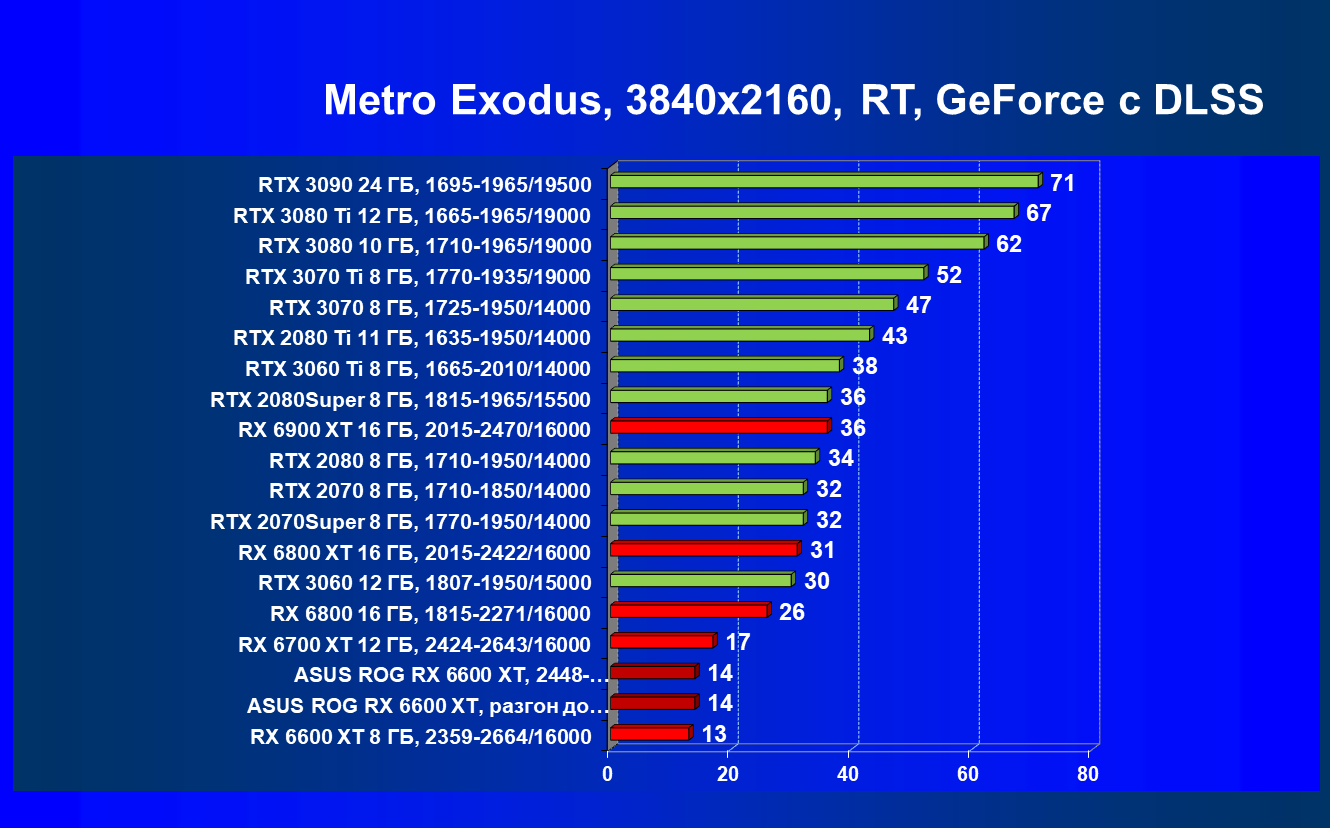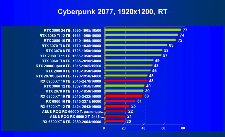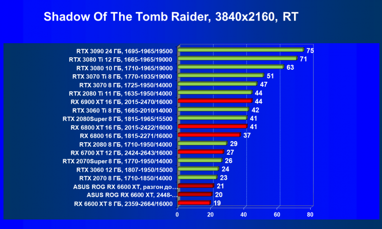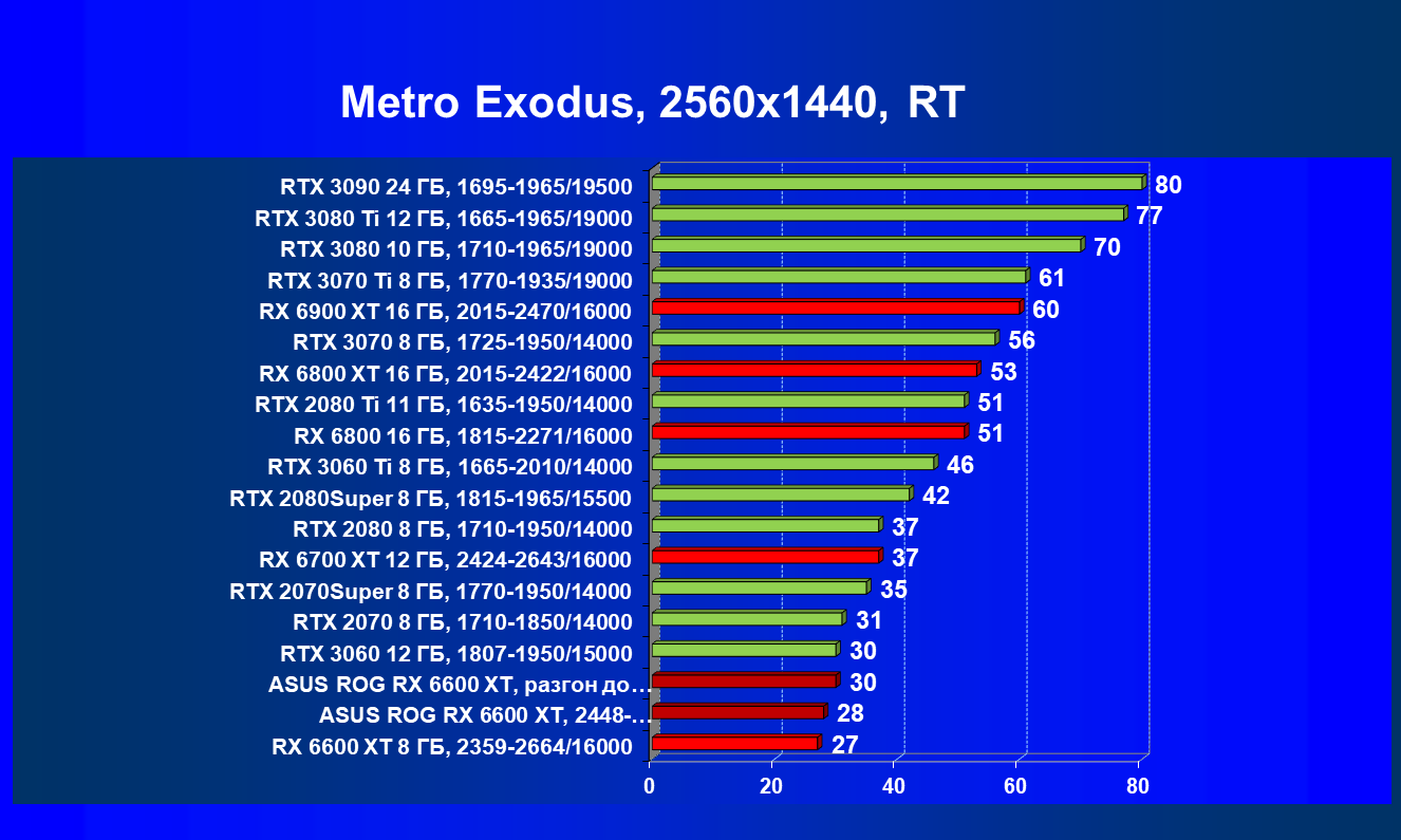 | 17 | Asus ROG RX 6600 XT, разгон до 3032/17600 | 80 | 12 | 65 000 |