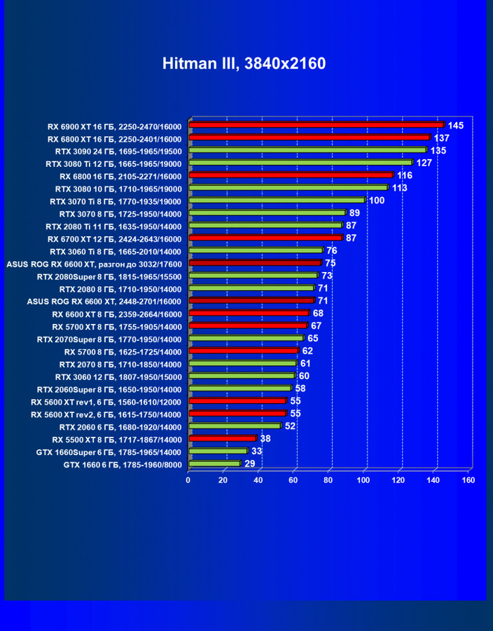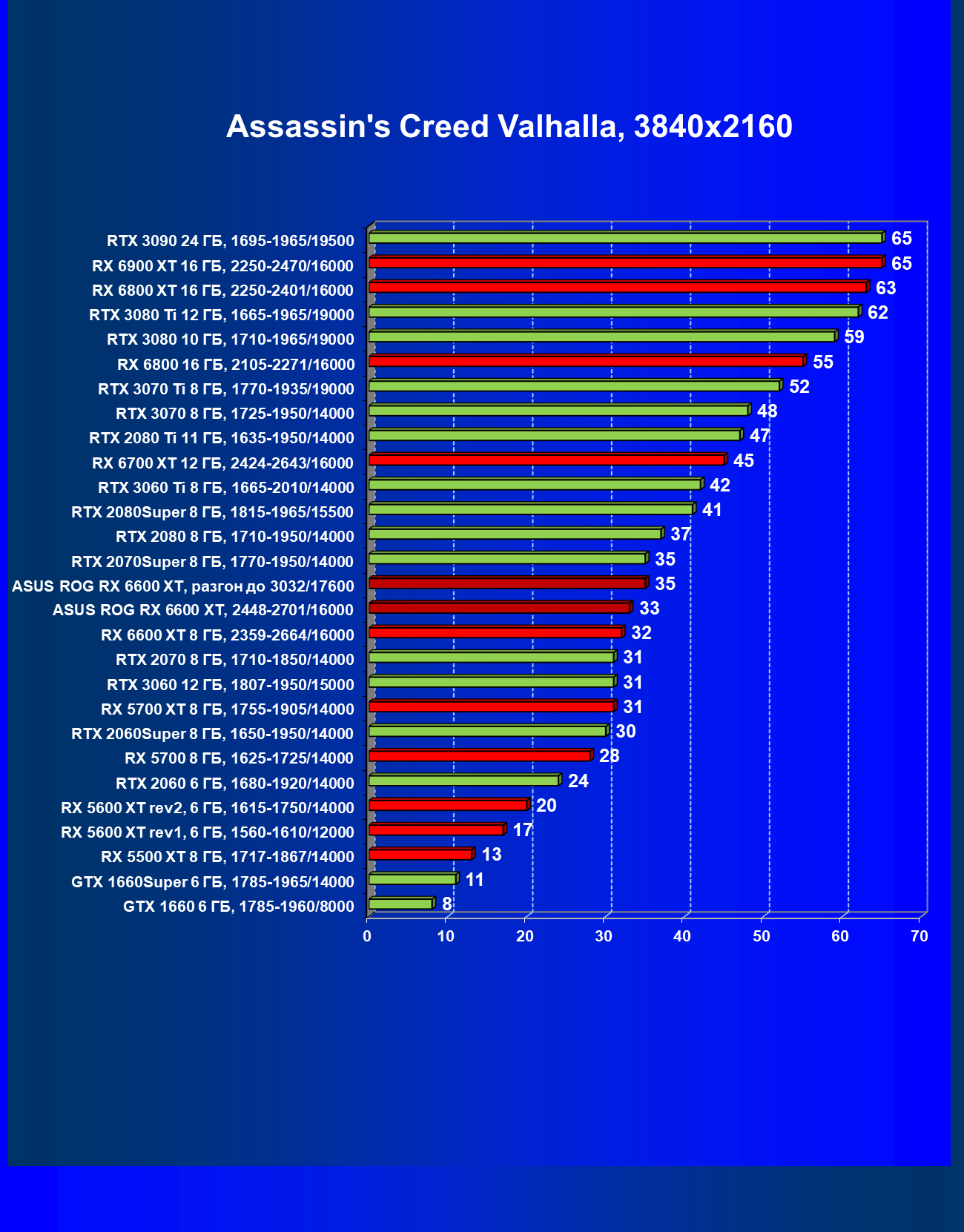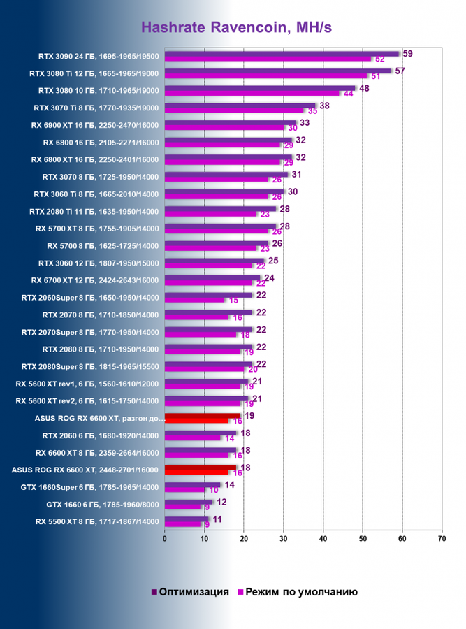 | 13 | Asus ROG RX 6600 XT, 2448—2701/16000 | 12 | 80 | 65 000 |