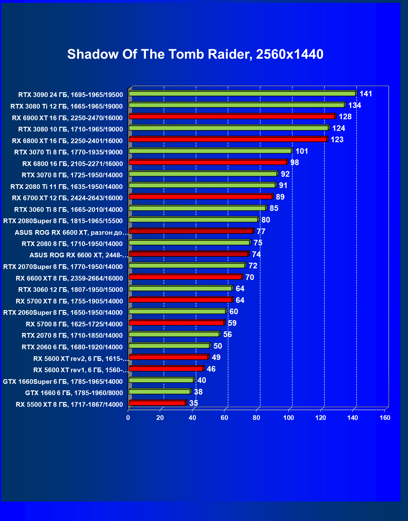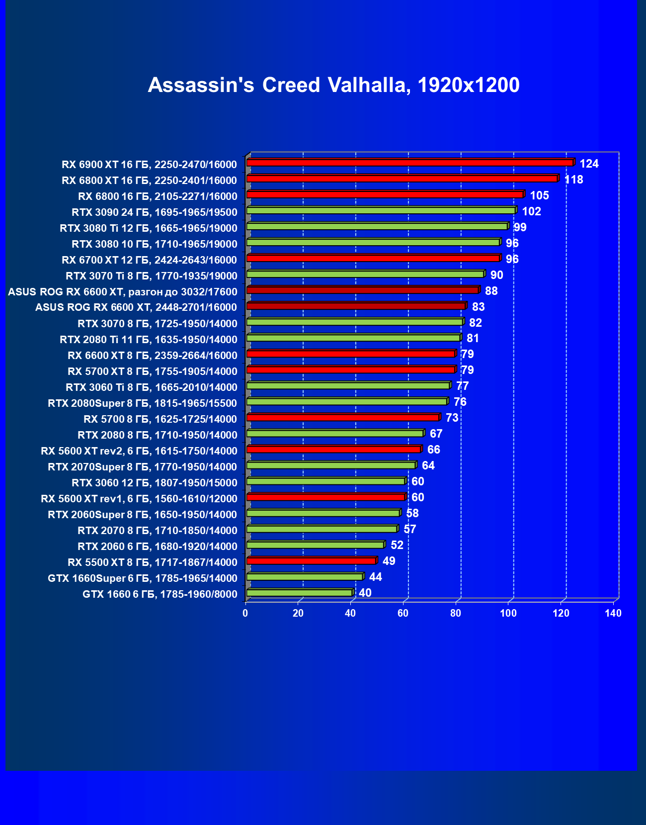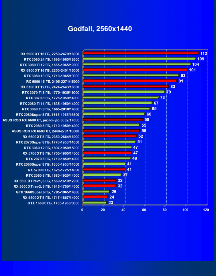 | 18 | Asus ROG RX 6600 XT, 2448—2701/16000 | 80 | 12 | 65 000 |