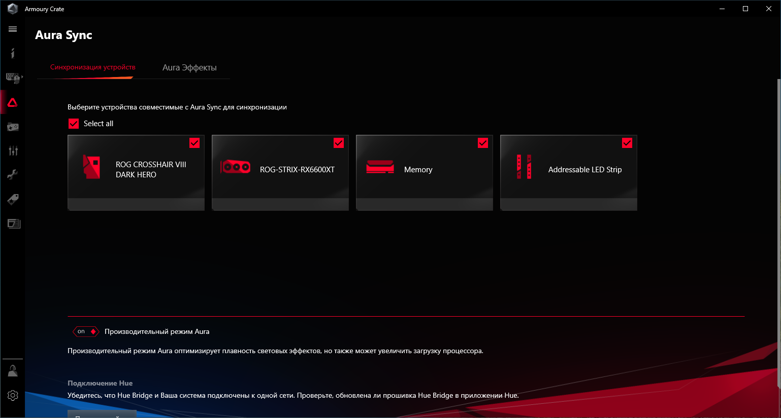 Управление подсветкой традиционно выполнено с помощью фирменной программы Asus — Armoury Crate.