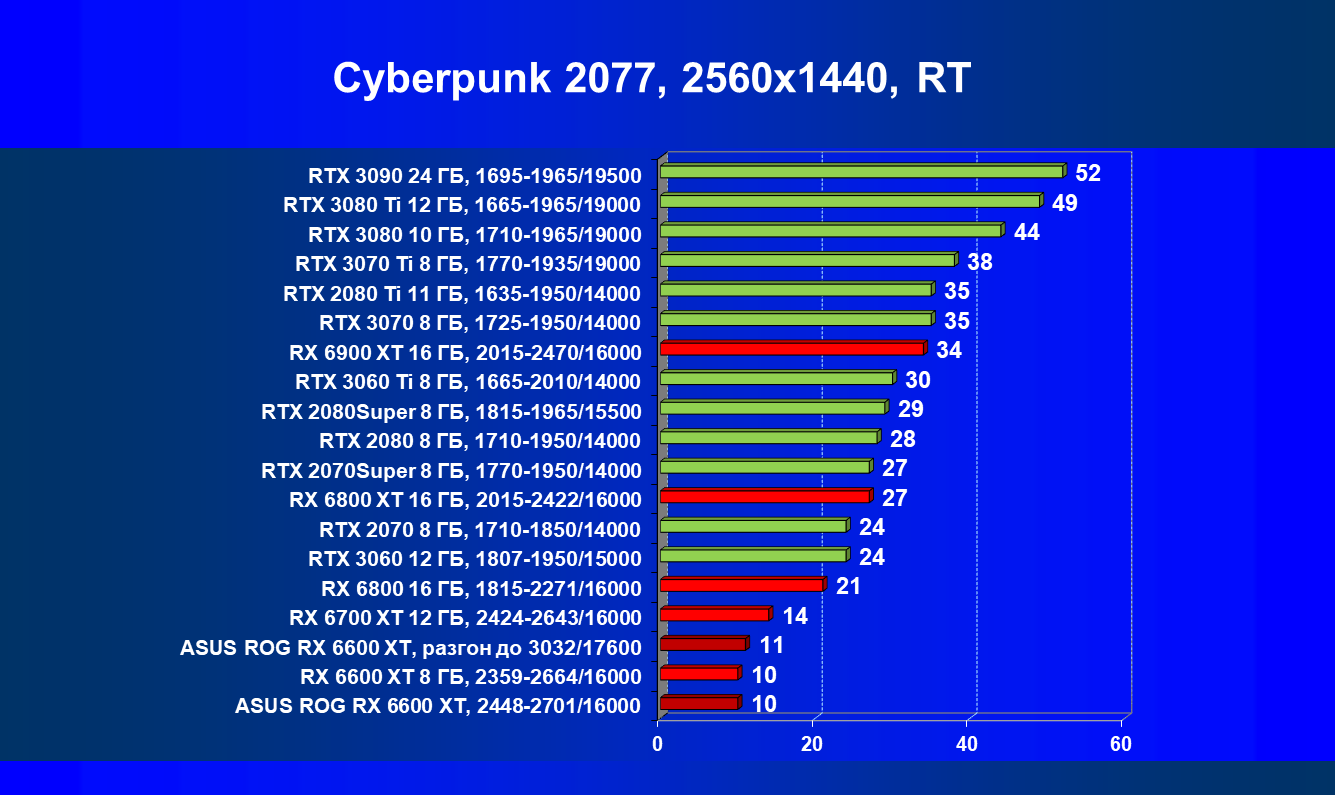 | 12 | Asus ROG RX 6600 XT, разгон до 3032/17600 | 12 | 80 | 65 000 |