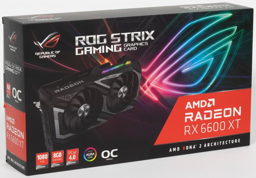 Объект исследования: серийно выпускаемый ускоритель трехмерной графики (видеокарта) Asus ROG Strix Radeon RX 6600 XT Gaming OC 8 ГБ 128-битной GDDR6.