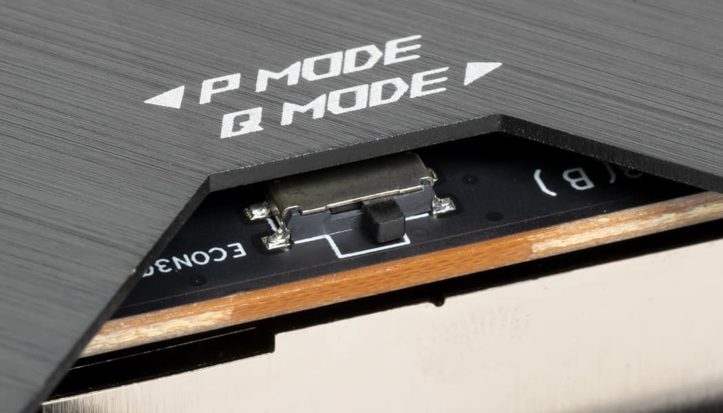 Позиции обозначены как P Mode (Performance) и Q Mode (Quiet). Разница заключается в разных кривых настройки работы вентиляторов (по частотам все практически идентично).