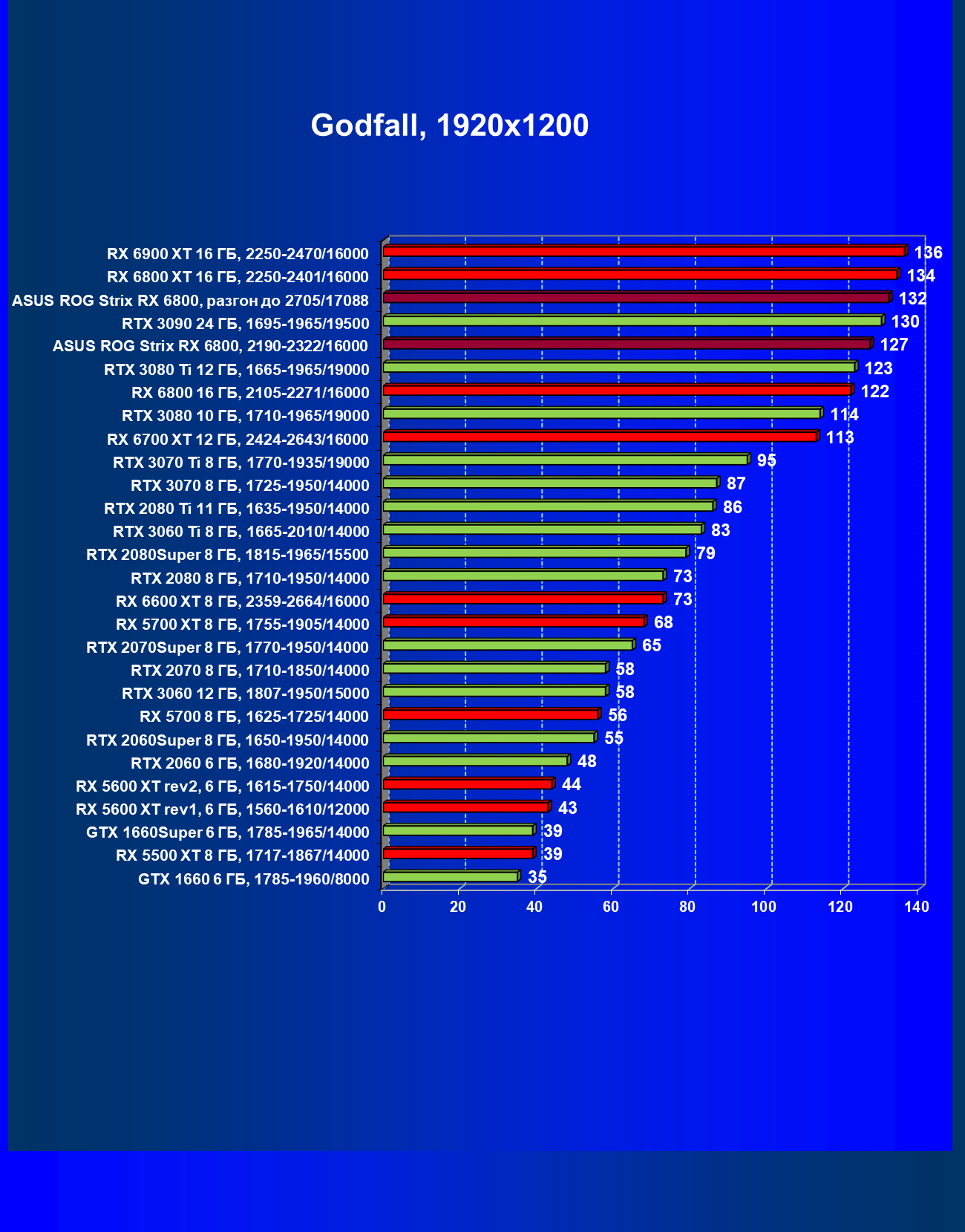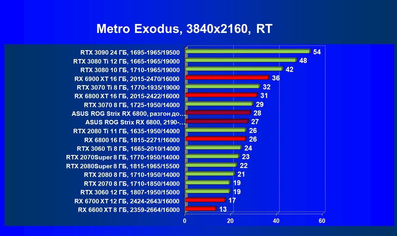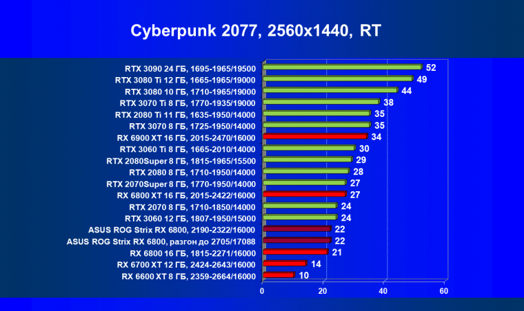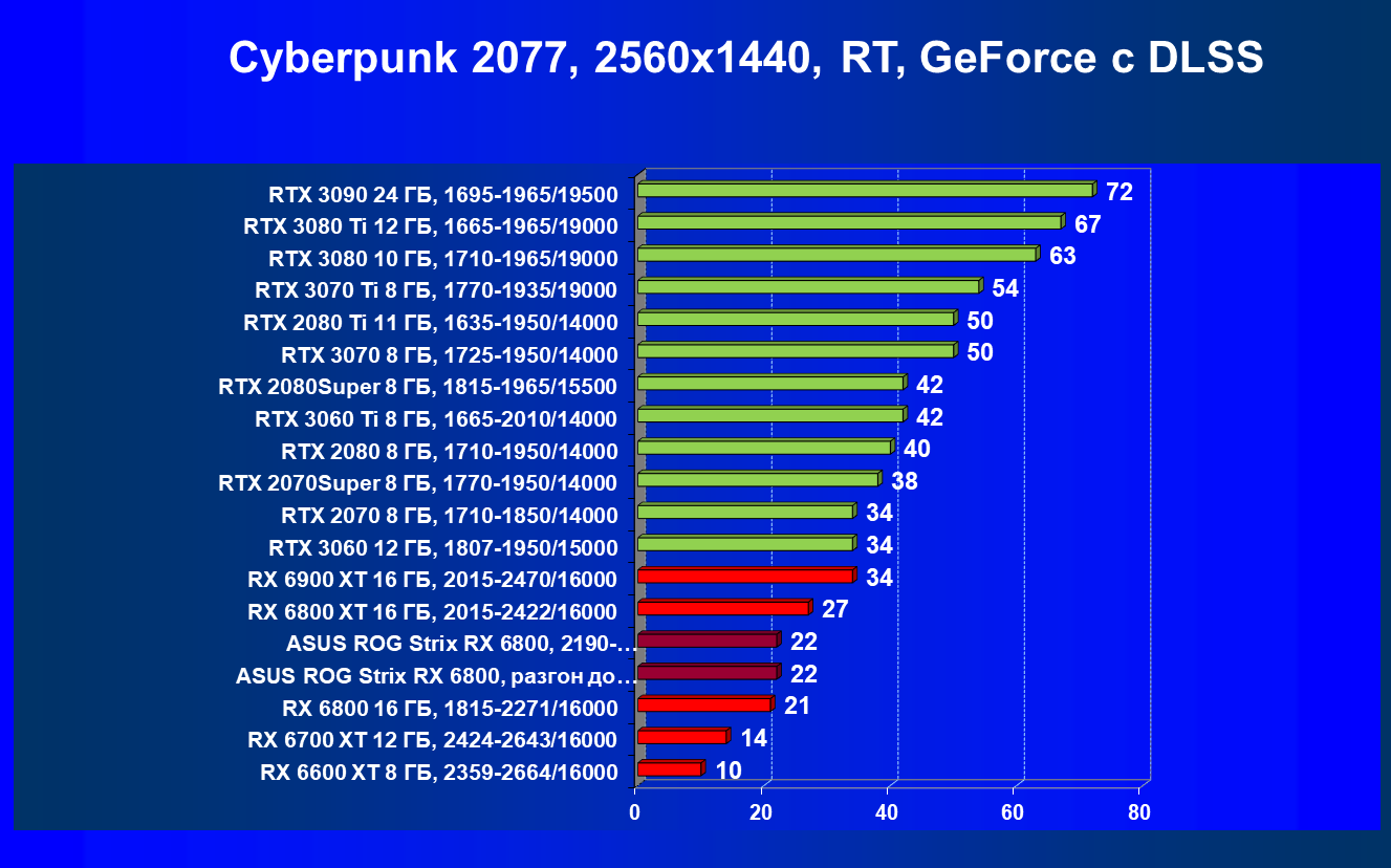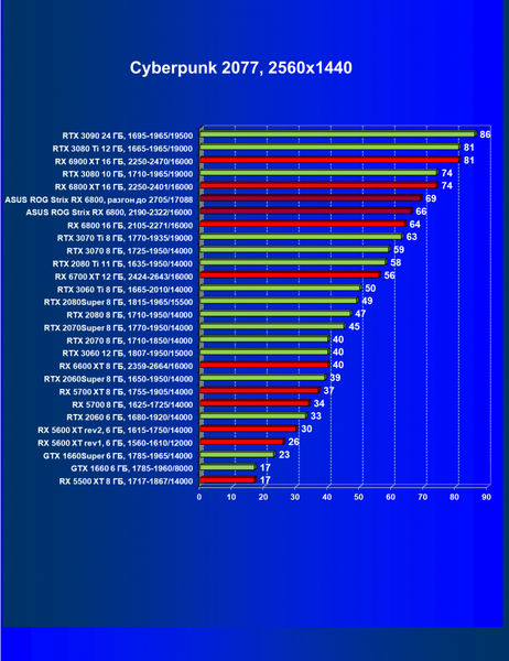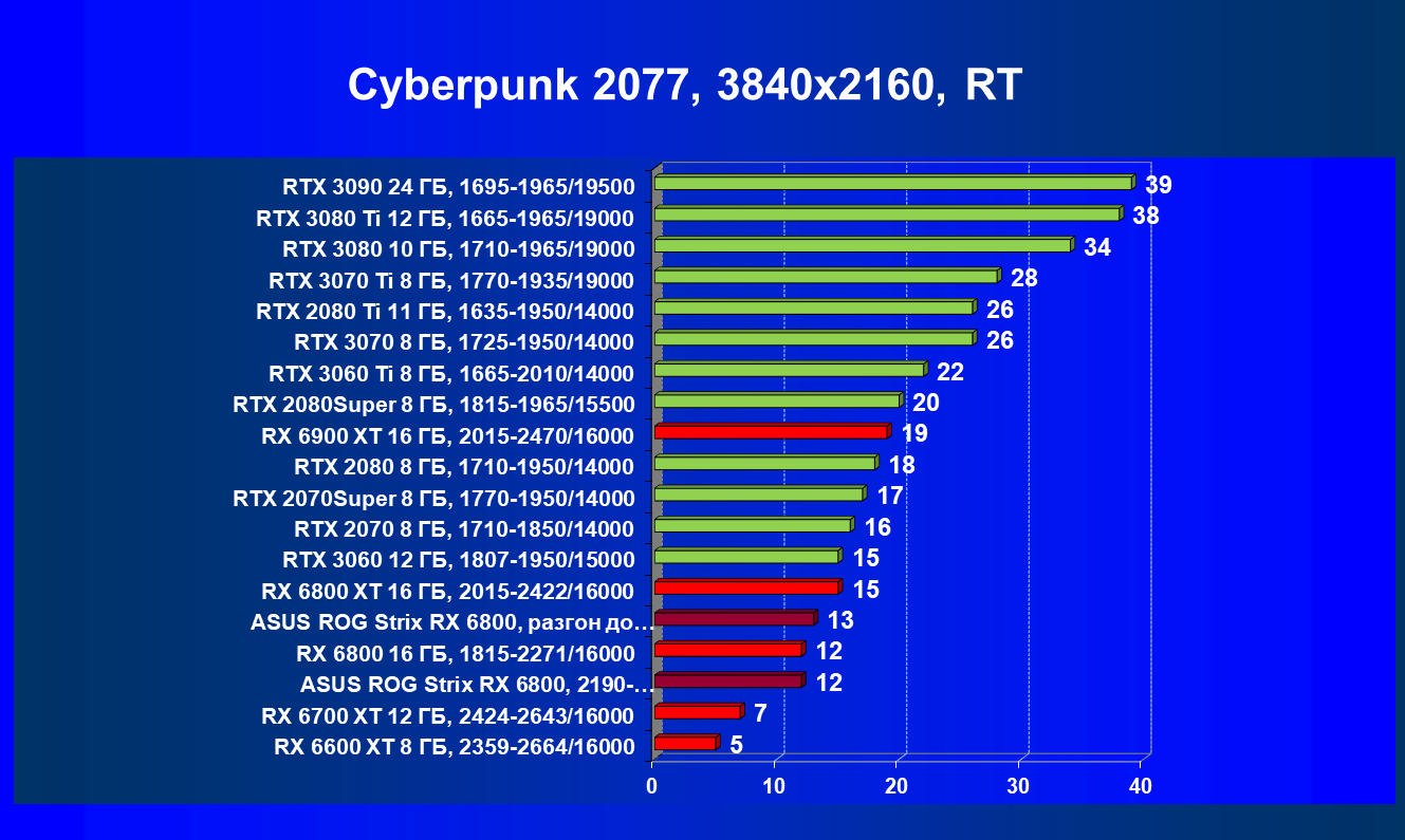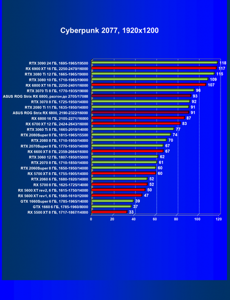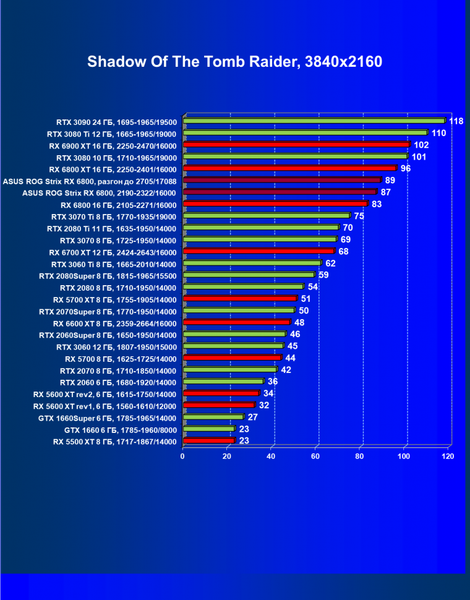 | 11 | Asus ROG Strix RX 6800, 2190—2322/16000 | 34 | 462 | 137 000 |