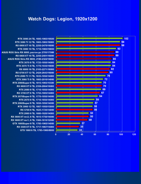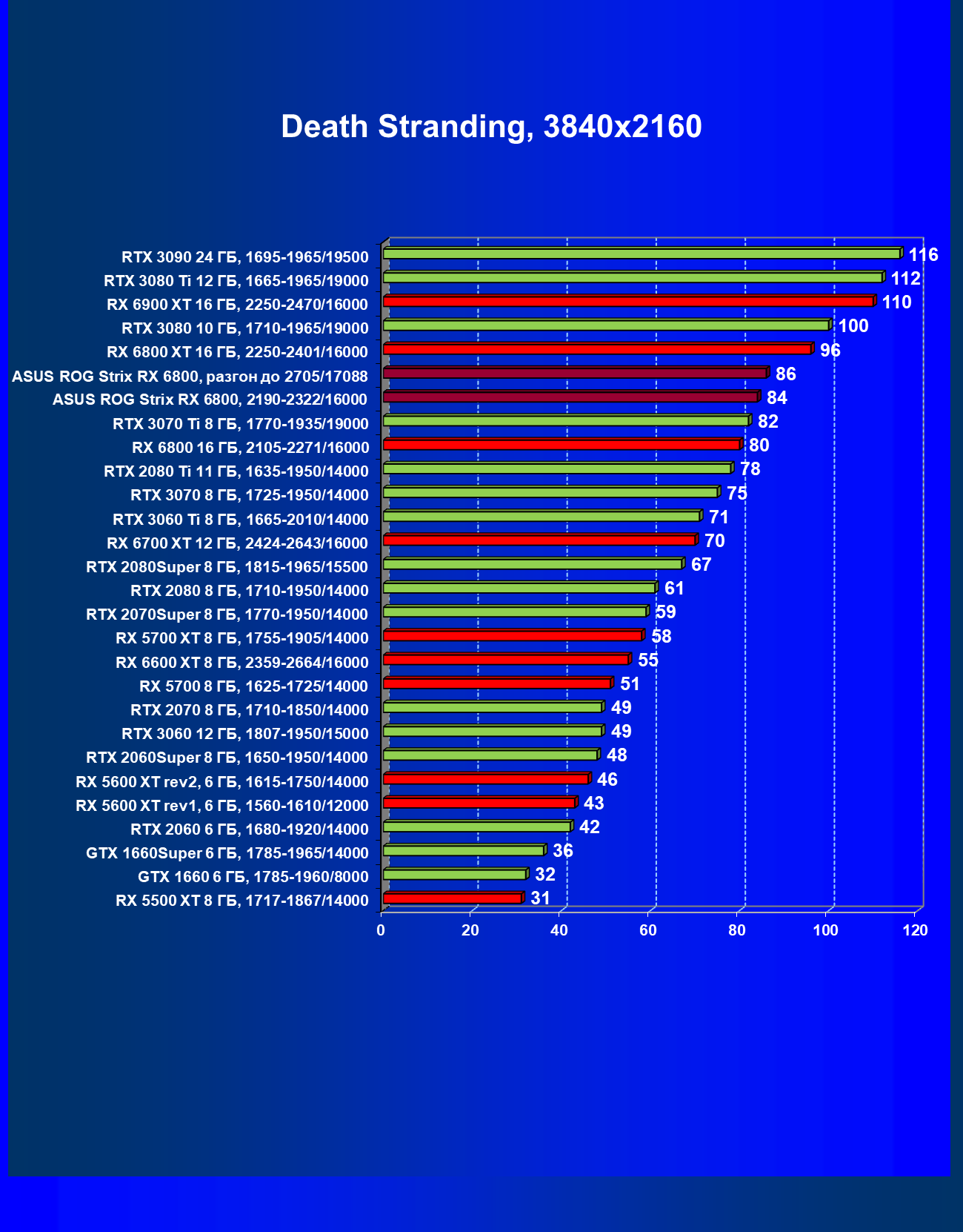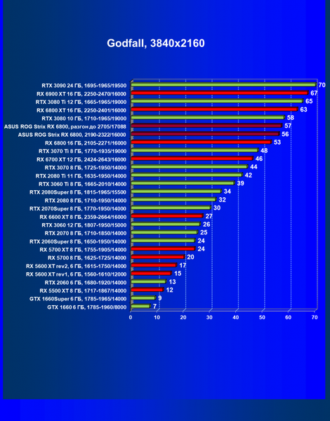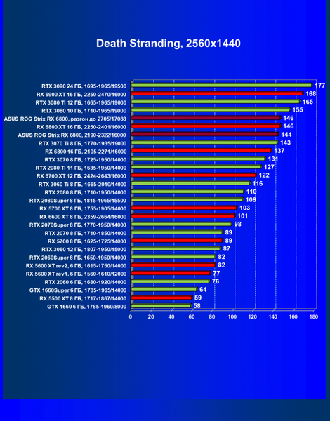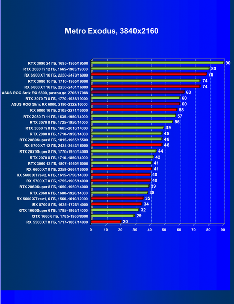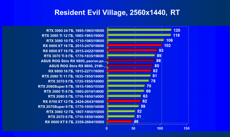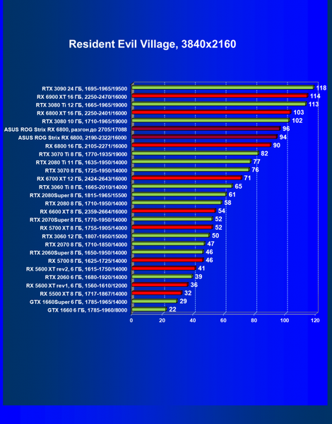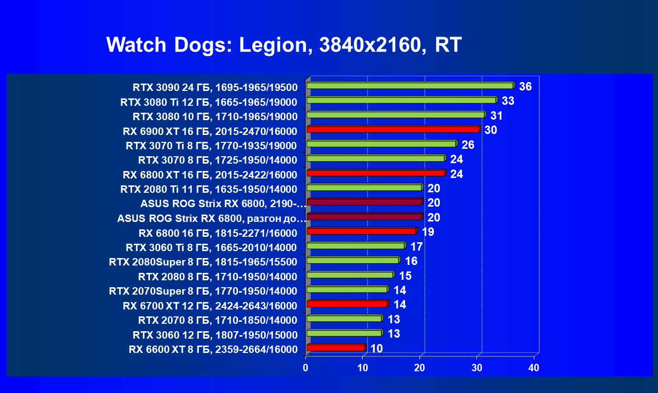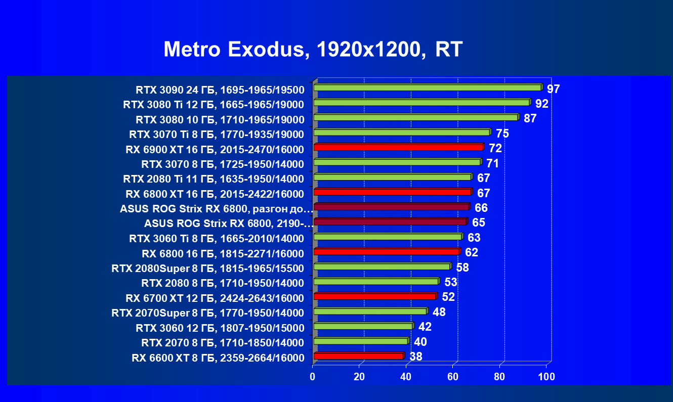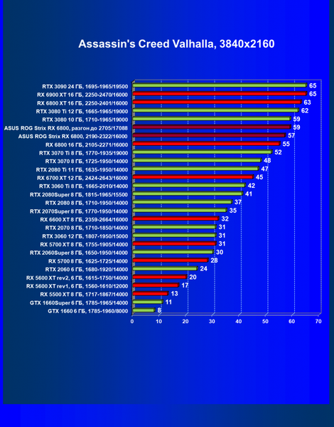 | 11 | Asus ROG Strix RX 6800, 2190—2322/16000 | 34 | 462 | 137 000 |