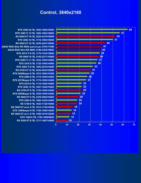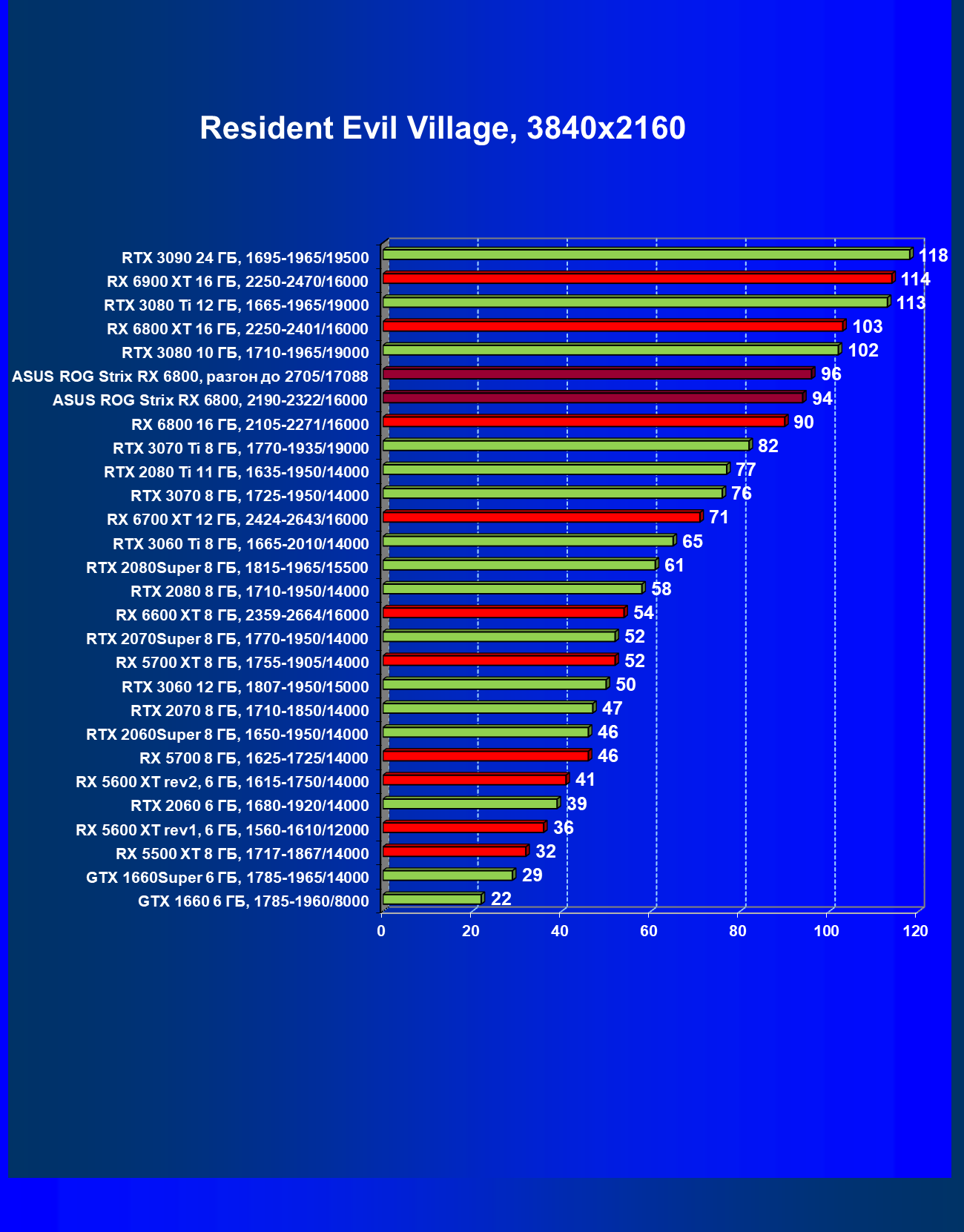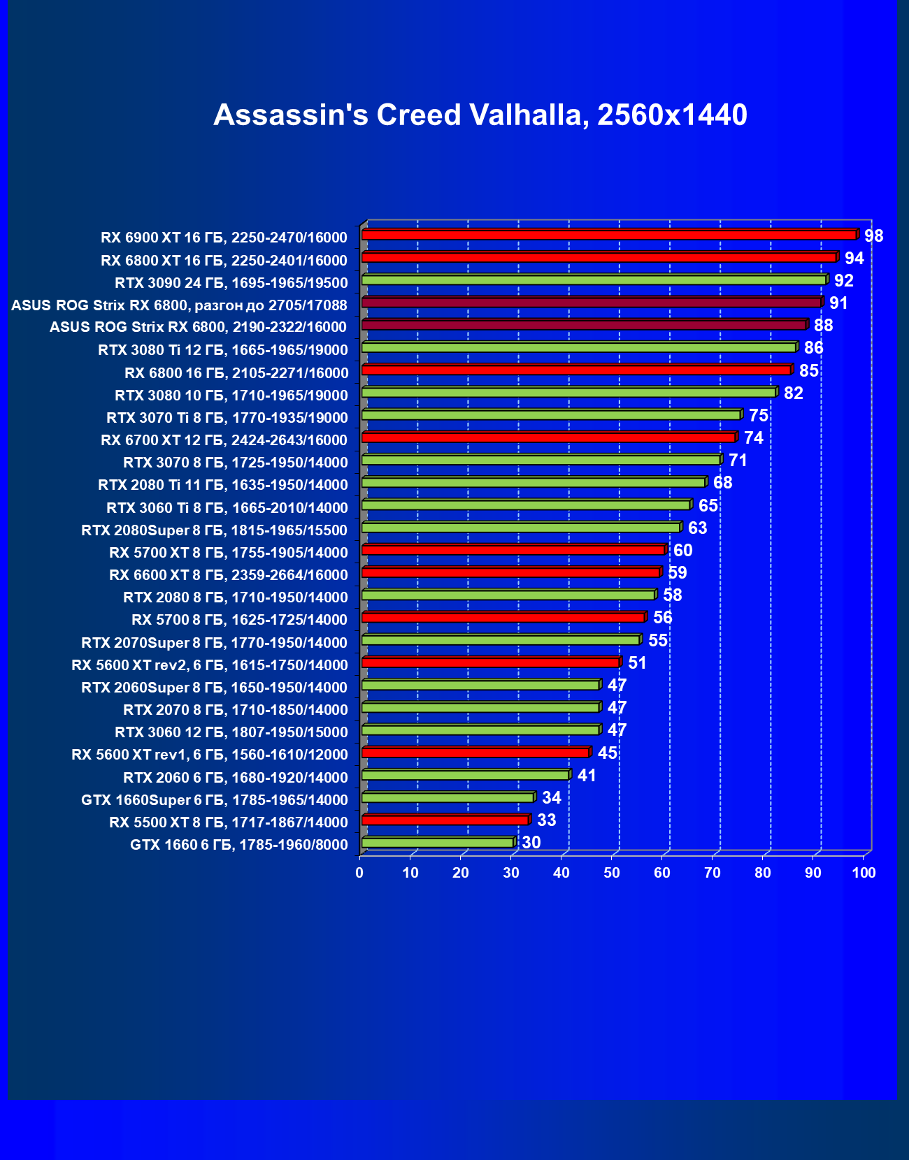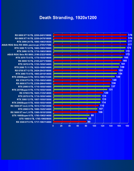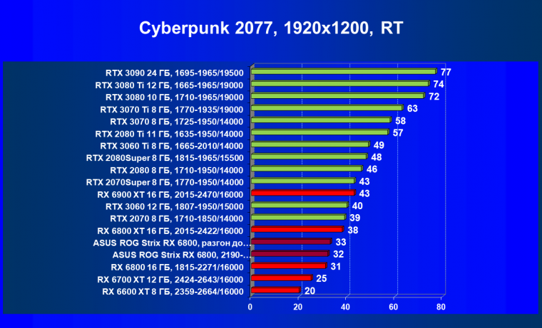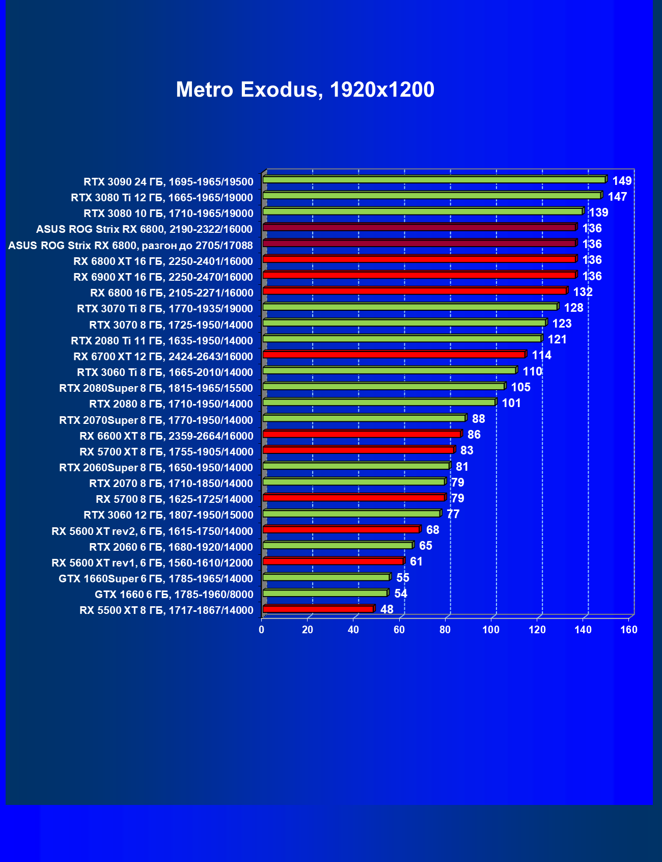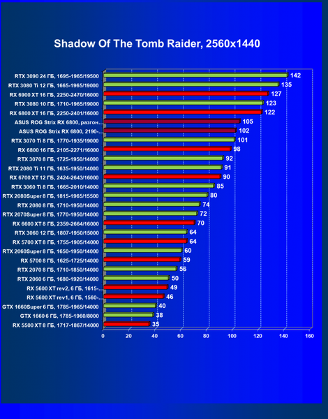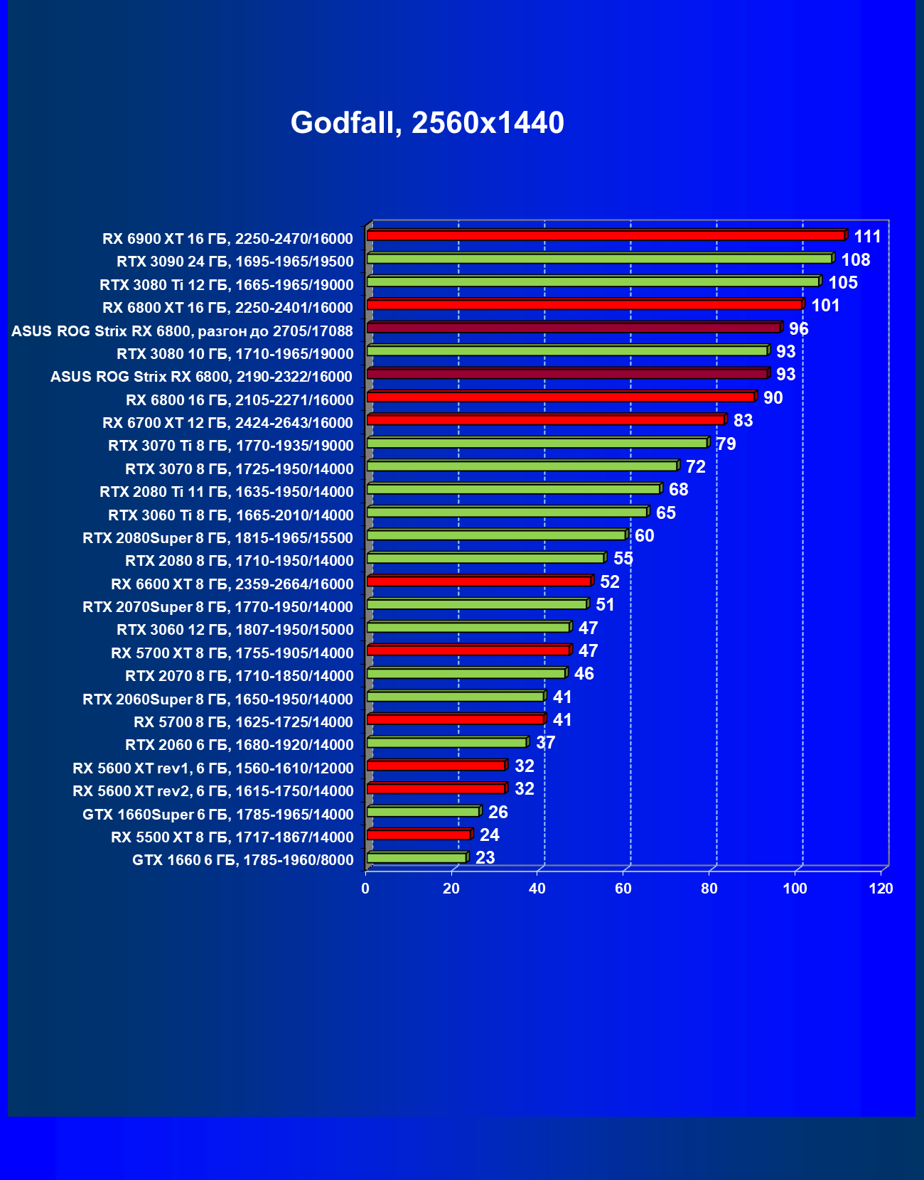 | 11 | Asus ROG Strix RX 6800, 2190—2322/16000 | 34 | 462 | 137 000 |