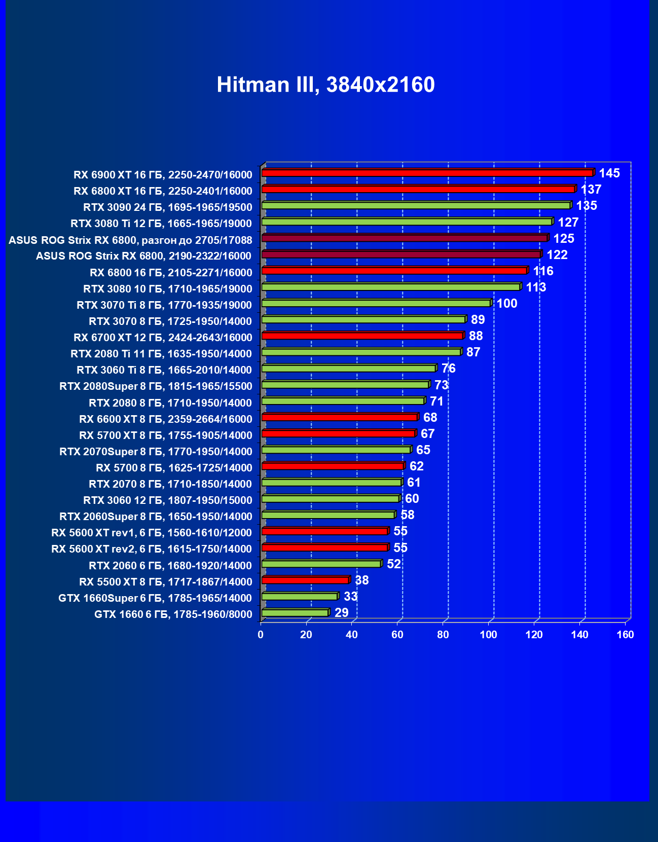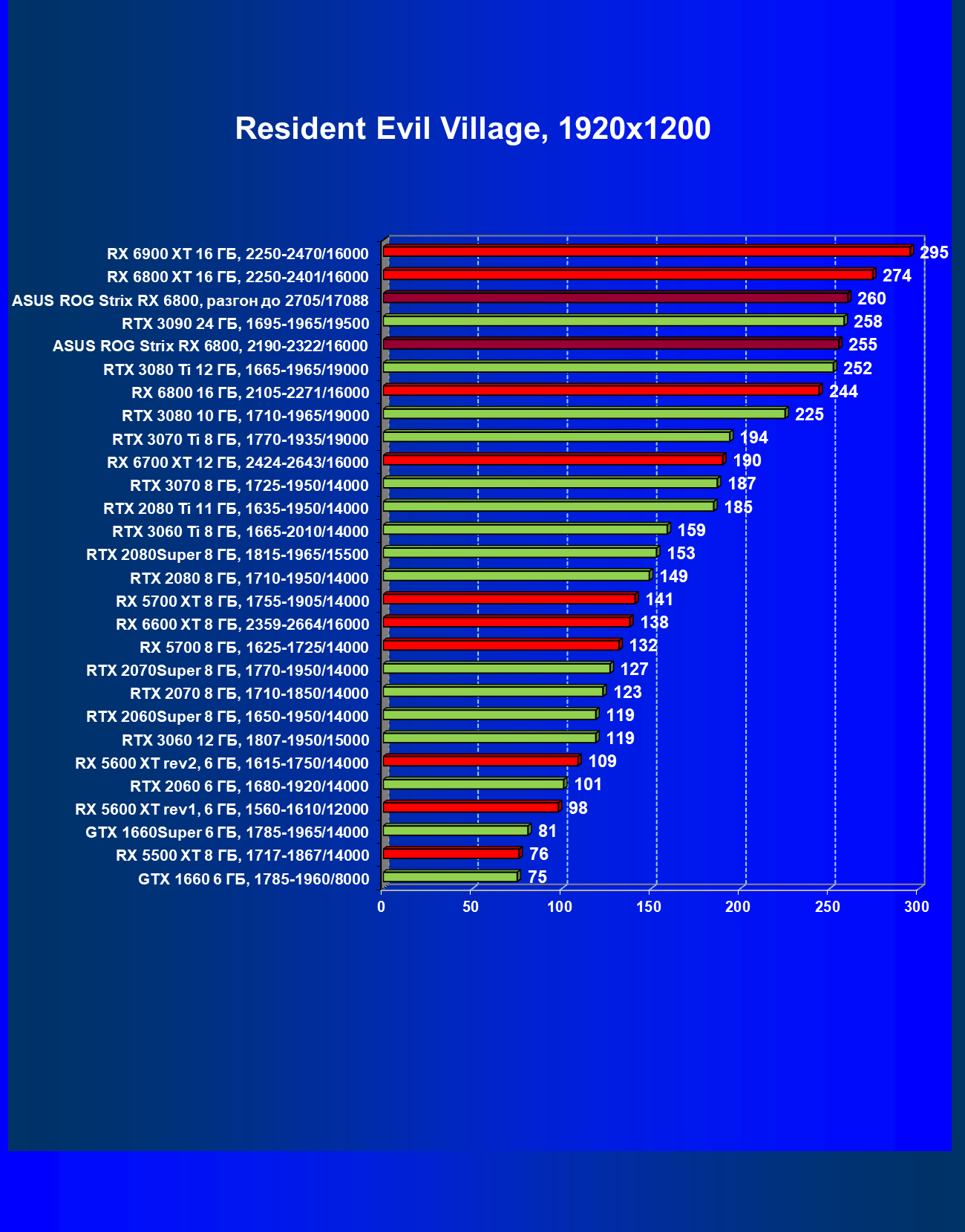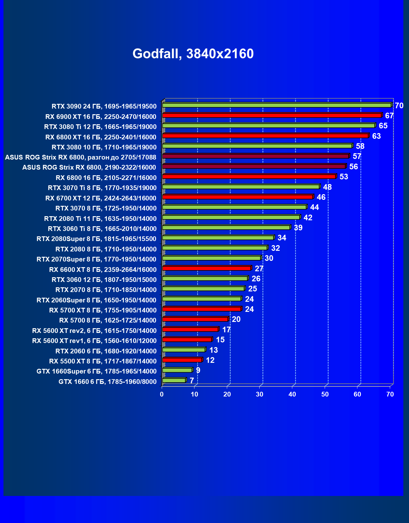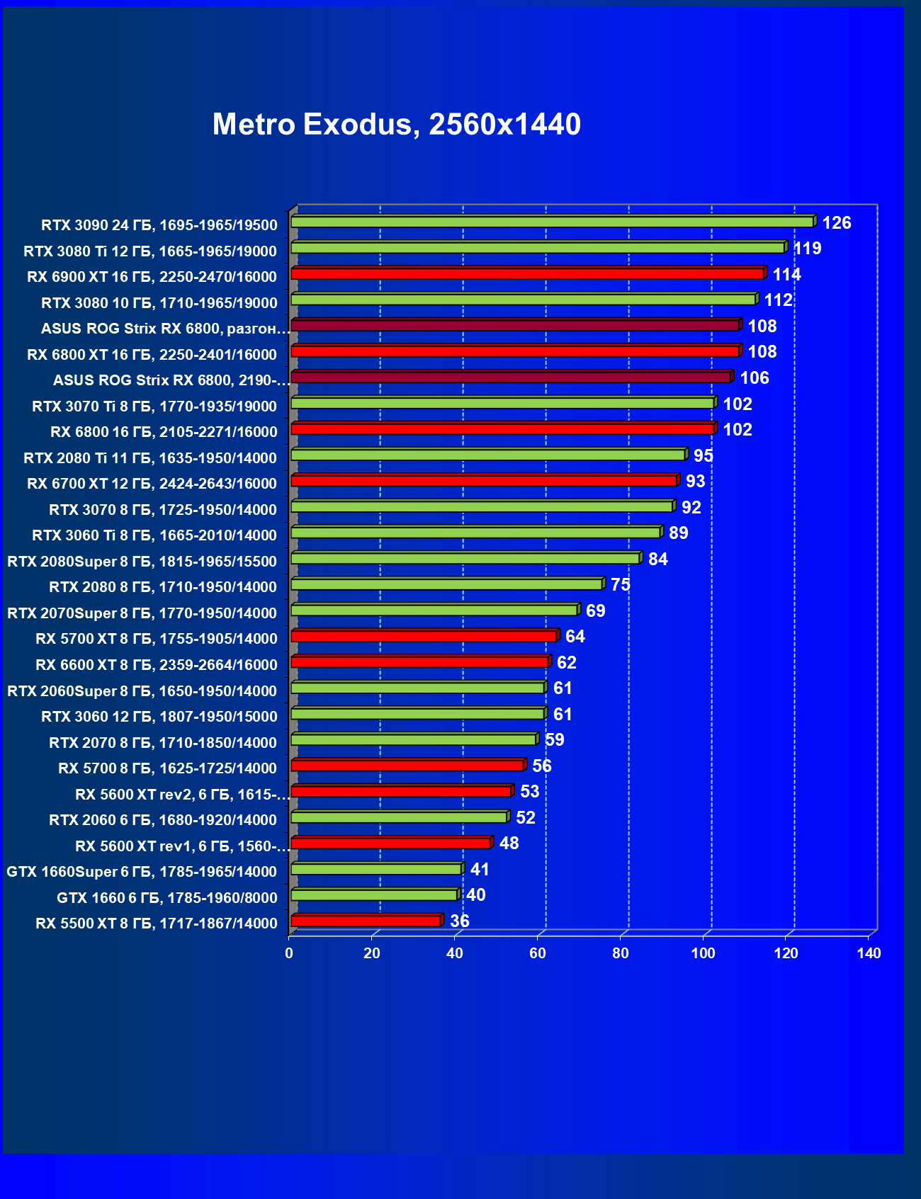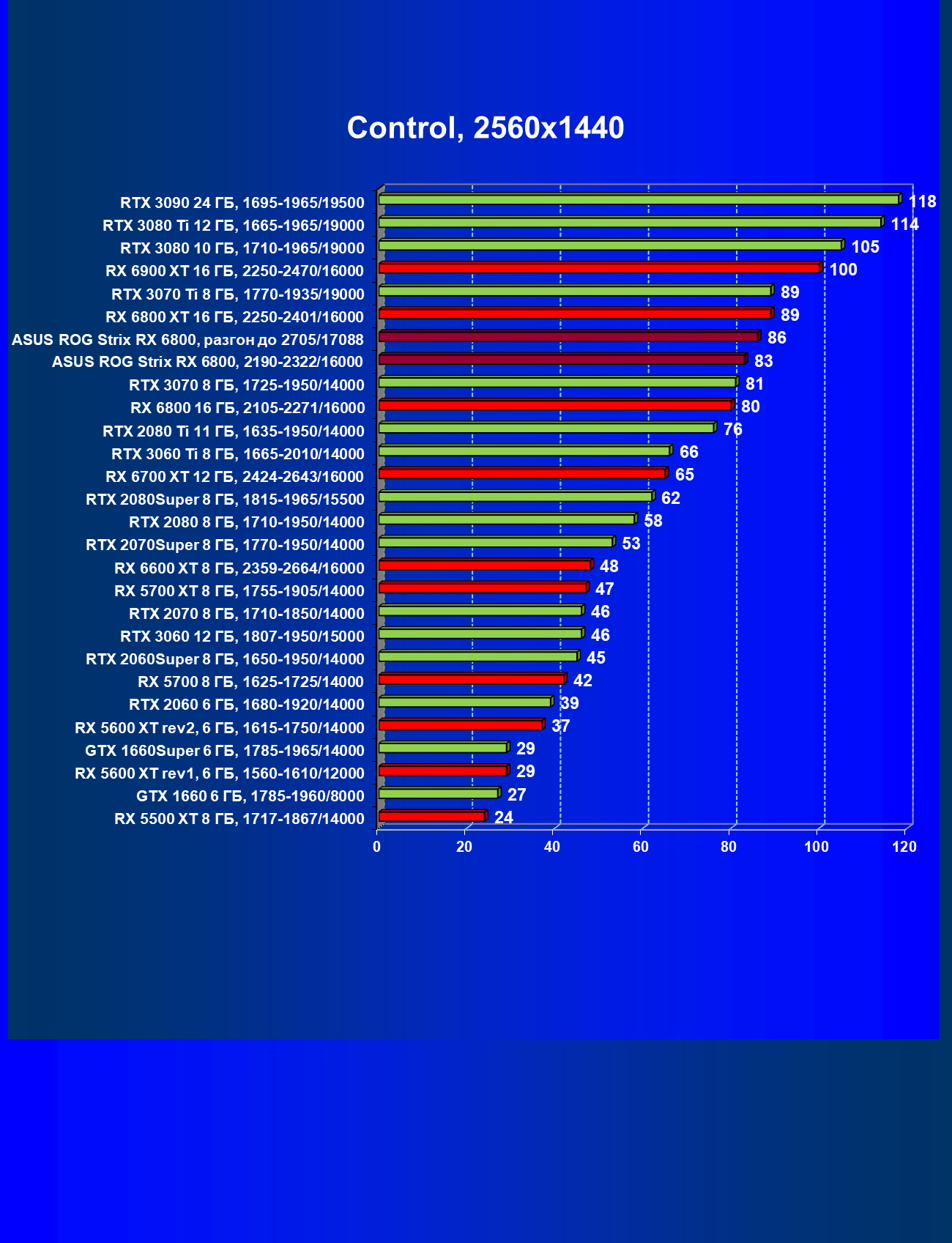 | 11 | Asus ROG Strix RX 6800, 2190—2322/16000 | 34 | 462 | 137 000 |