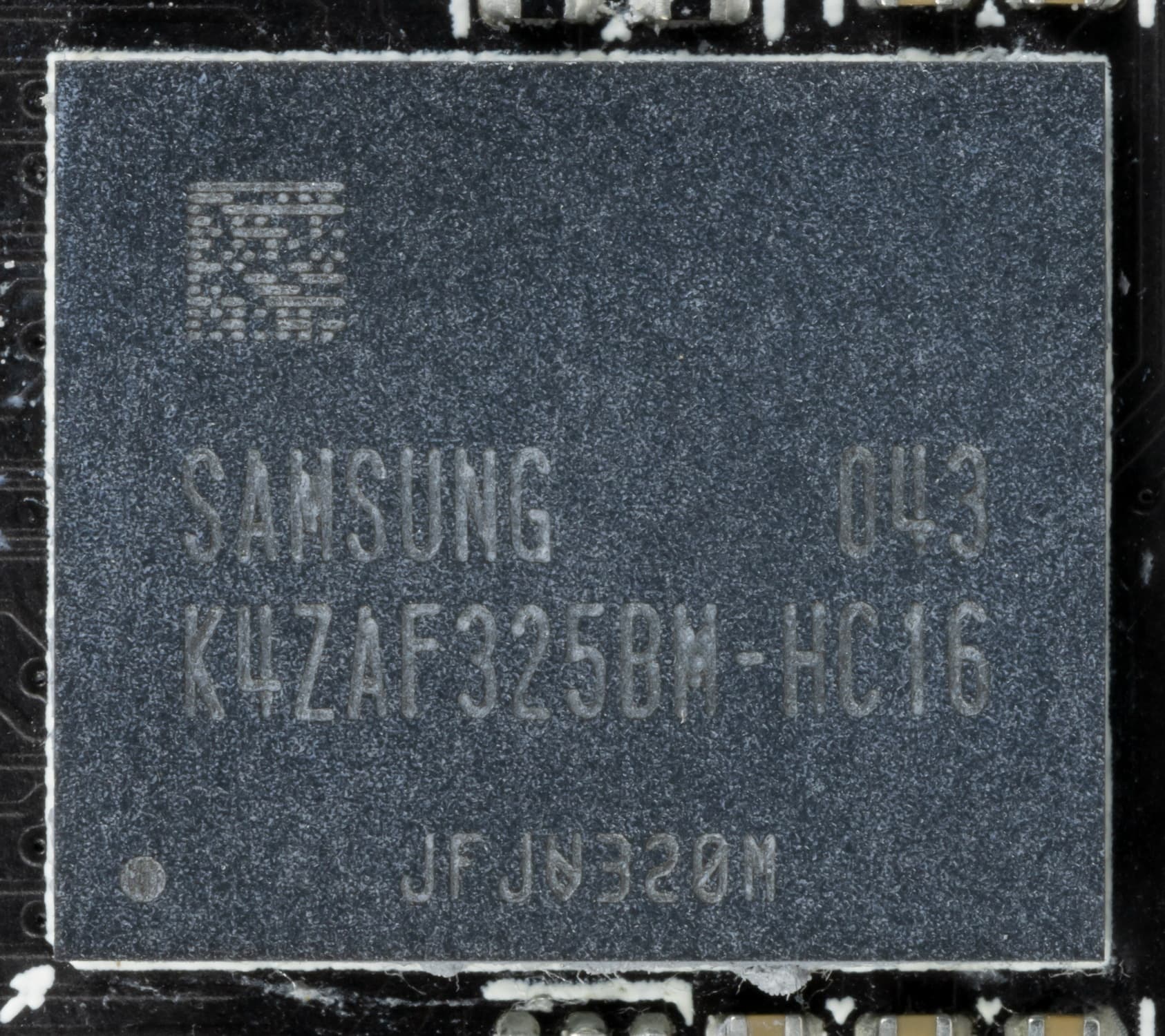 Карта имеет 16 ГБ памяти GDDR6 SDRAM, размещенной в 8 микросхемах по 16 Гбит на лицевой стороне PCB. Микросхемы памяти Samsung (GDDR6, K4ZAF325BM-HC16) рассчитаны на условную номинальную частоту работы в 4000 (16000) МГц.