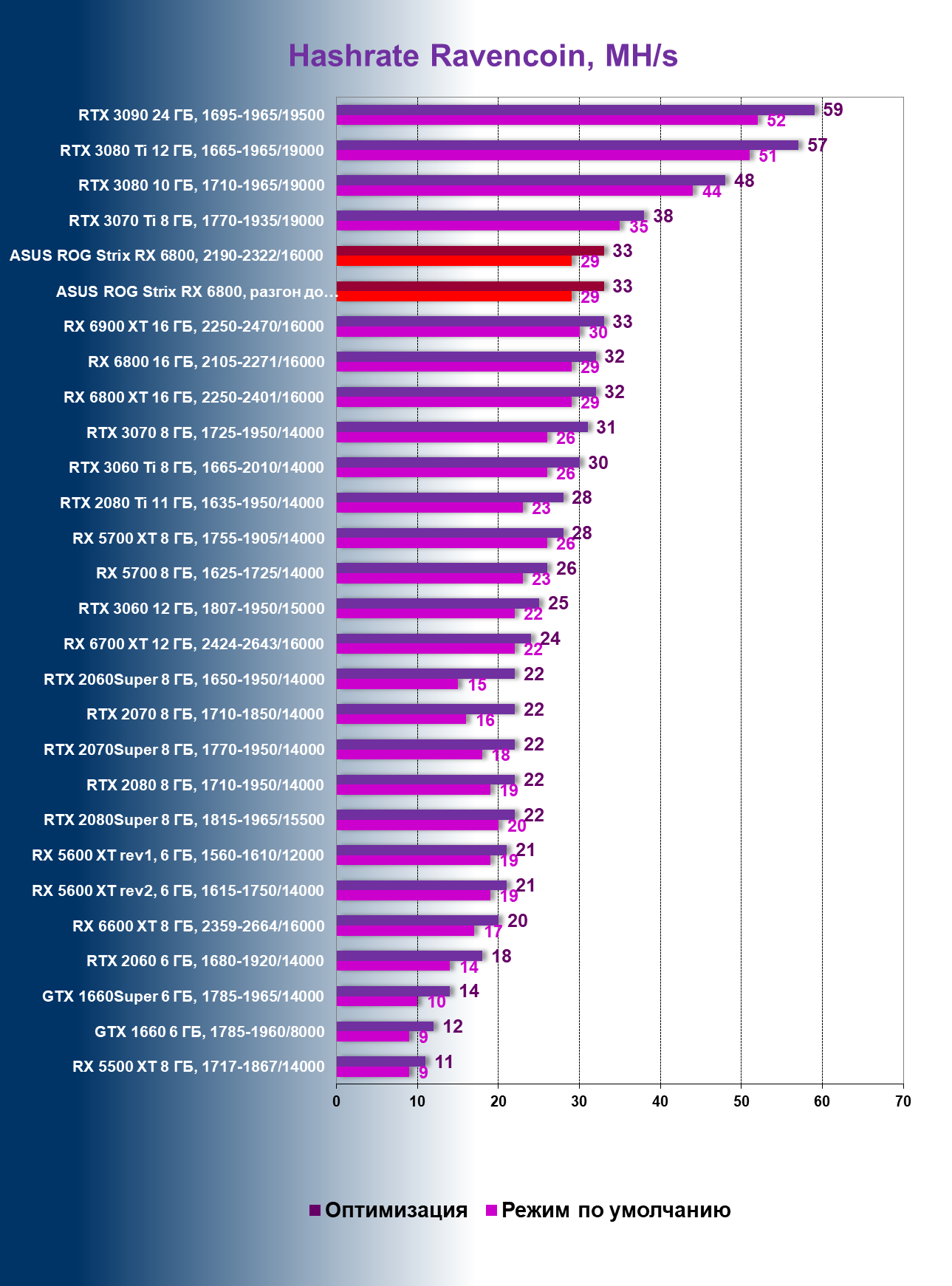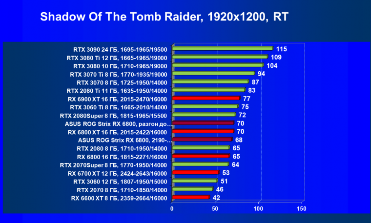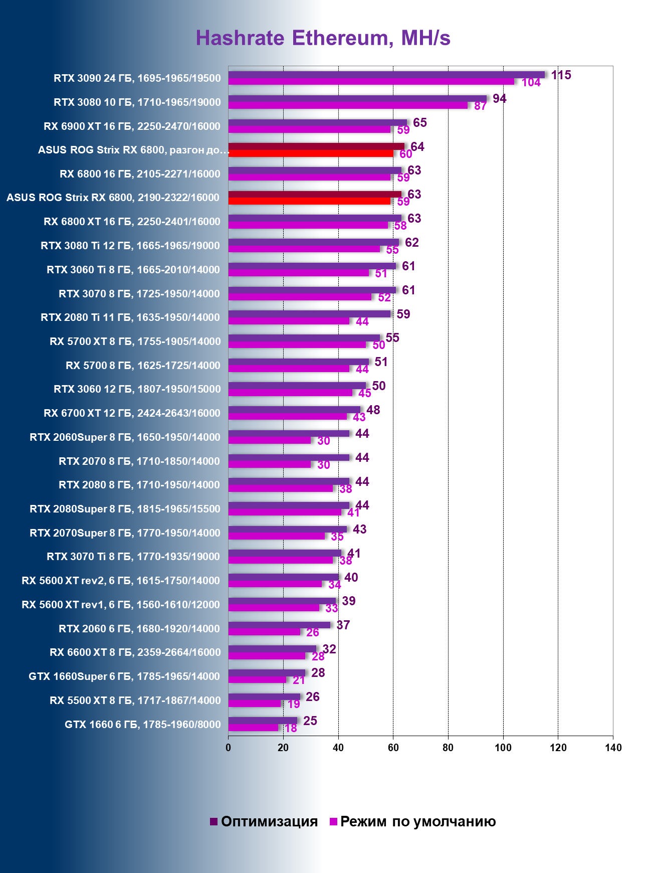 | 09 | Asus ROG Strix RX 6800, разгон до 2705/17088 | 140 | 10 | 137 000 |
