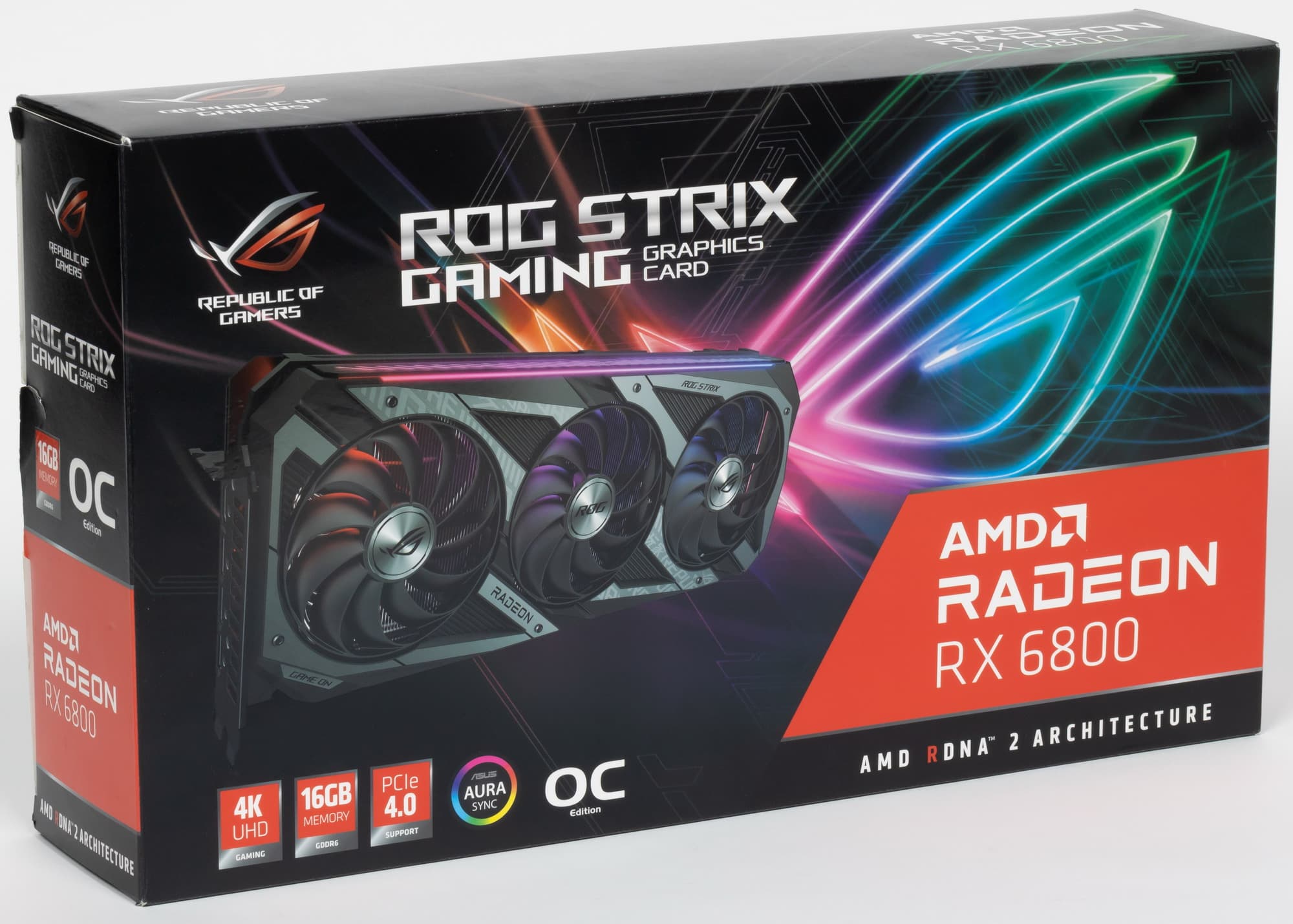 Объект исследования: серийно выпускаемый ускоритель трехмерной графики (видеокарта) Asus ROG Strix Radeon RX 6800 Gaming OC 16 ГБ 256-битной GDDR6.