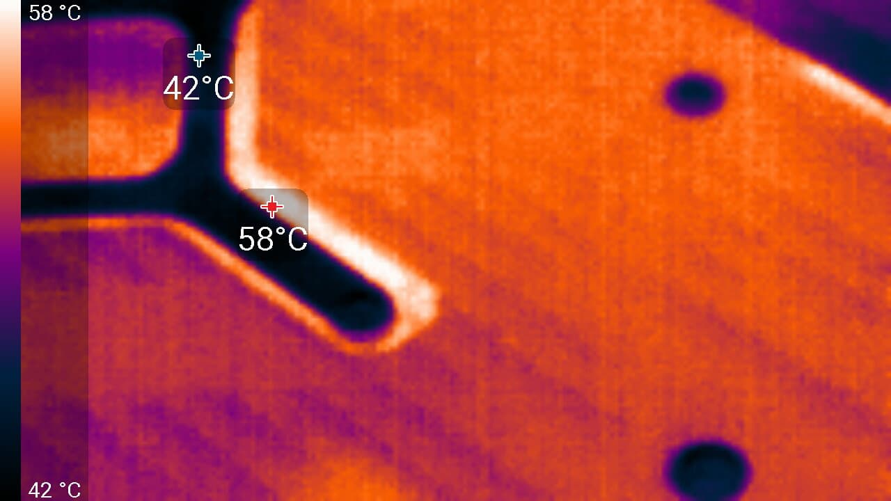После 2-часового прогона под нагрузкой в OC Mode максимальная температура ядра не превысила 58 градусов, что является просто потрясающе отличным результатом для видеокарт такого уровня. Максимальная мощность была зафиксирована на уровне 227 Вт, а максимальный нагрев наблюдался в центре PCB.