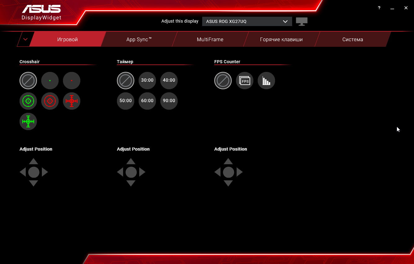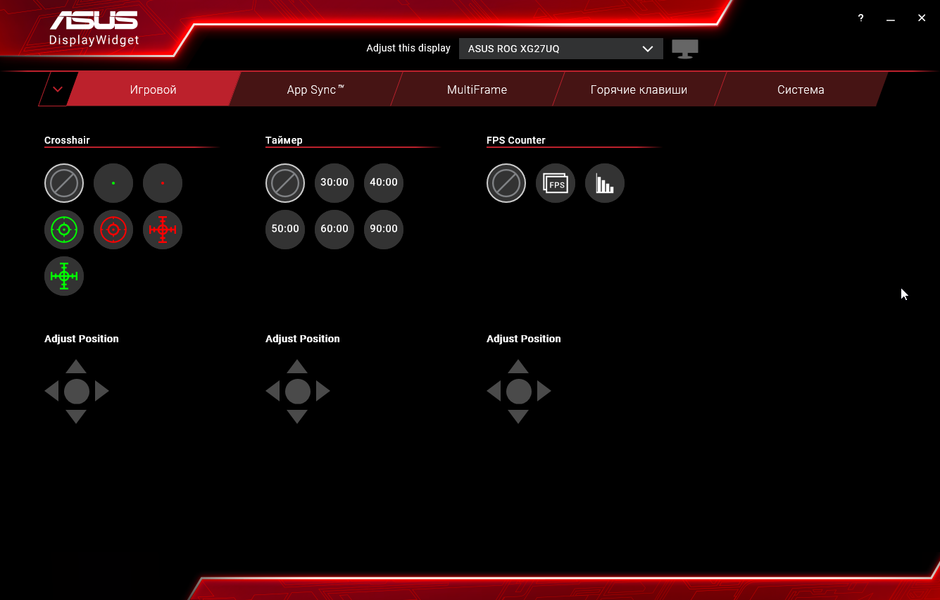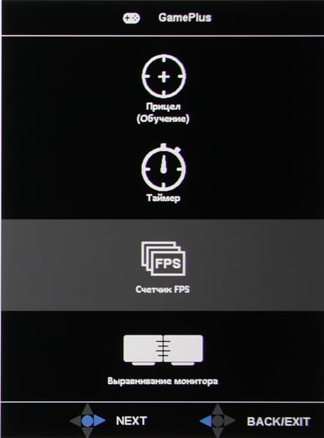 Из дополнительных возможностей в наборе GamePlus присутствуют четыре «геймерские» функции: вывод на экране прицела выбранной формы, таймера с обратным отсчетом от фиксированных значений, счетчика частоты кадров (с графиком или без) и меток для выравнивания установленных встык мониторов.