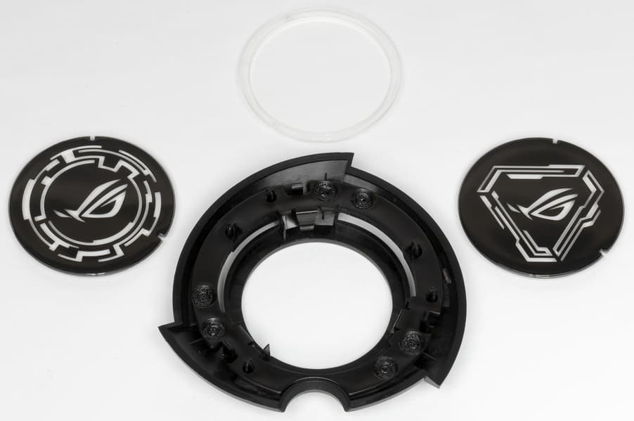Две с логотипом ROG и просто прозрачная, на которой пользователь может нарисовать что-то свое. В меню можно выбрать яркость этой подсветки или отключить ее совсем (настройка Свет в движении).