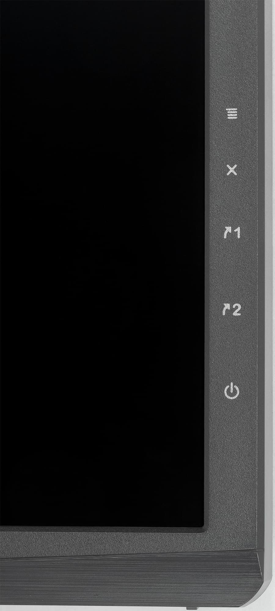 Индикатор состояния неяркий. Он светится белым при работе монитора, оранжевым в режиме ожидания и не горит, когда монитор условно выключен. Индикатор отключается в меню. Навигация по меню удобная, списки зациклены, еще больше удобство повышается за счет джойстика. Если монитор работает, и на экране нет меню, то при первом нажатии (отклонение игнорируется) на джойстик выводится основное меню, а при нажатии на кнопку с крестиком выводится только короткое меню из значков-подсказок напротив кнопок.