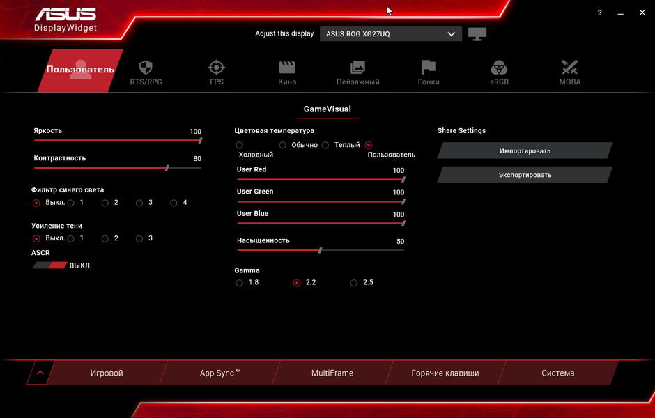 - ПО Asus DisplayWidget для настройки монитора и не только