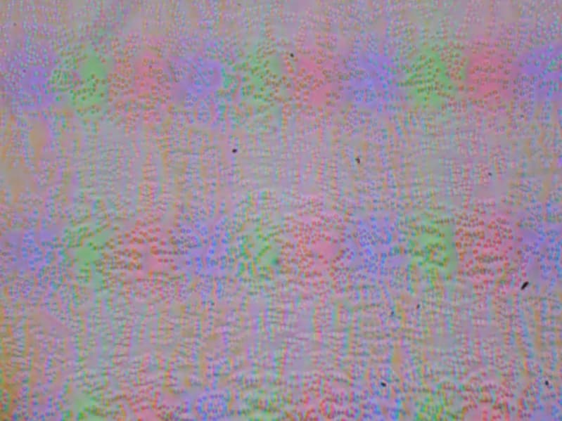 Зерно этих дефектов в несколько раз меньше размеров субпикселей, поэтому фокусировка на микродефектах и «перескок» фокуса по субпикселям при изменении угла зрения выражены слабо, из-за этого нет и «кристаллического» эффекта.